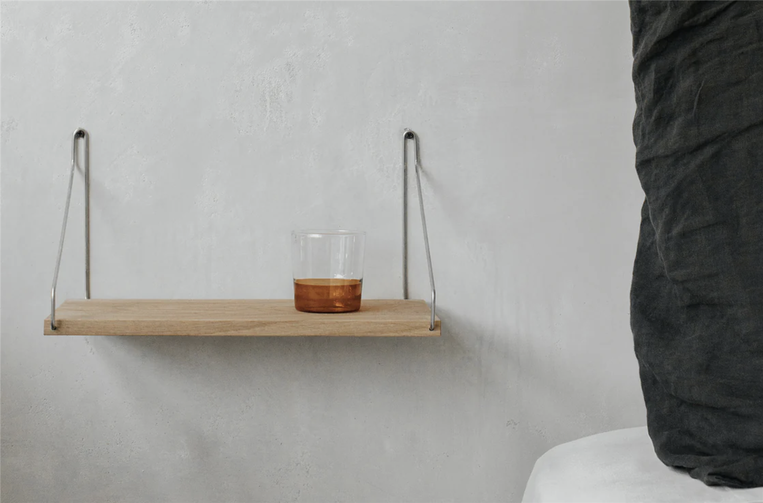 The Single Shelf is a refined take on a classic, its character inspired by shelving considered a staple in Danish homes as early as the 1930s. Carpenters would attach generic brackets, similar to those now used in the Single Shelf, to custom shelving, cut down to fit. A versatile design for bedside, kitchen, office, storage, and display.