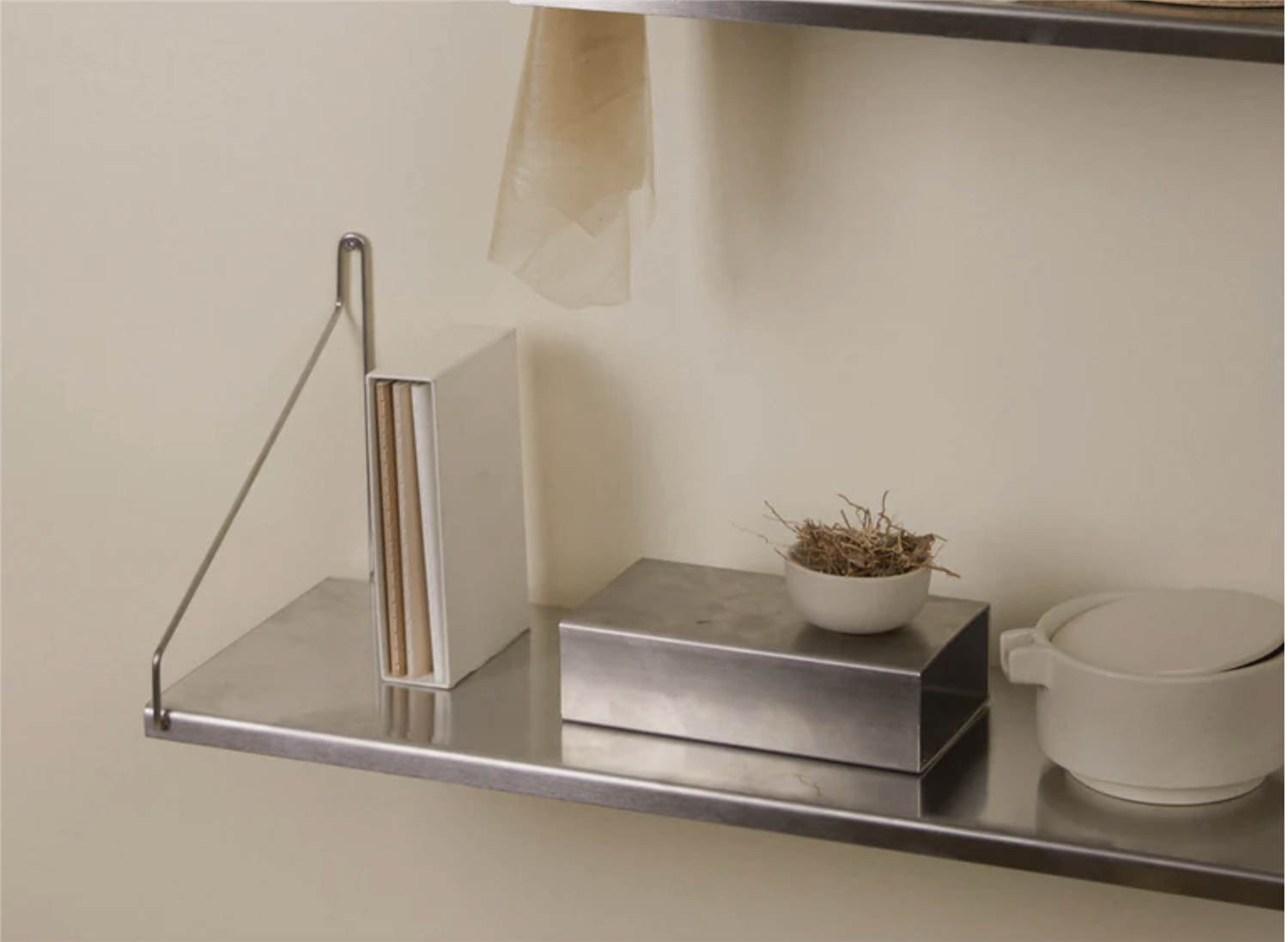 The Single Shelf is a refined take on a classic, its character inspired by shelving considered a staple in Danish homes as early as the 1930s. Carpenters would attach generic brackets, similar to those now used in the Single Shelf, to custom shelving, cut down to fit. A versatile design for bedside, kitchen, office, storage, and display.