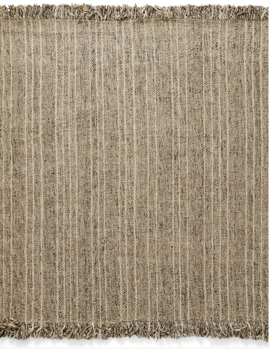 Rug no.20 is a hand-woven wool rug with a mid beige melange foundation with a soft sandy shaded stripe, creating a harmonious and delicate effect.