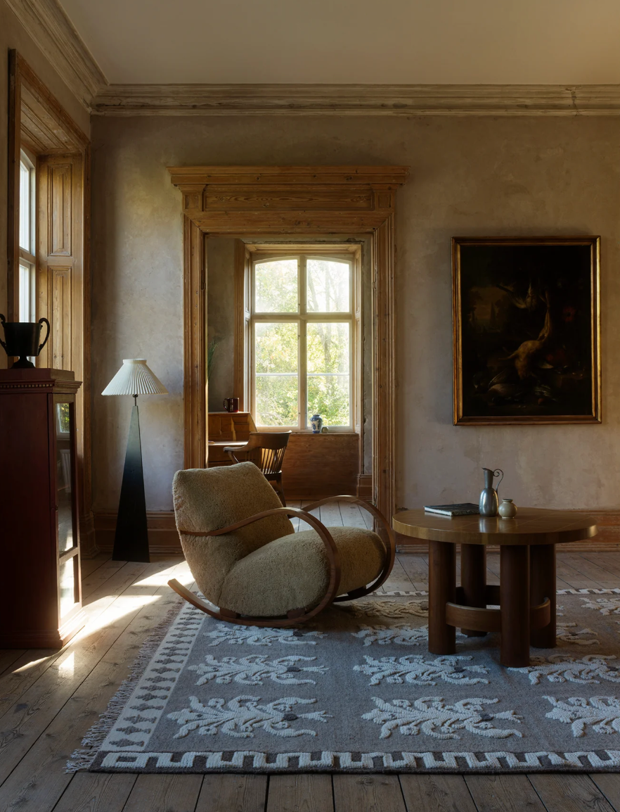 no. 25 is built on a flat foundation, adorned with hand-knotted motifs, creating a subtle high-low texture. The color palette of no. 25 leans toward cooler tones, with light grey as the dominant hue, lending it a modern and refined look.