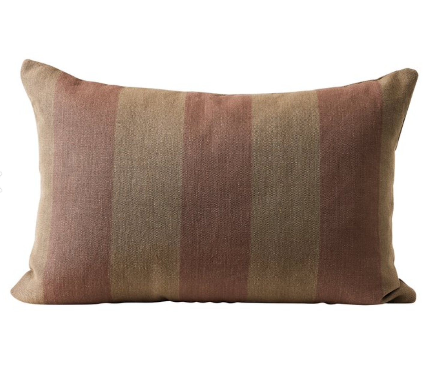 This is the Jopmega40-oldrose. A hazel-coloured cushion cover with stripes in the colour old rose, which ensures a warm-toned edition to your home.