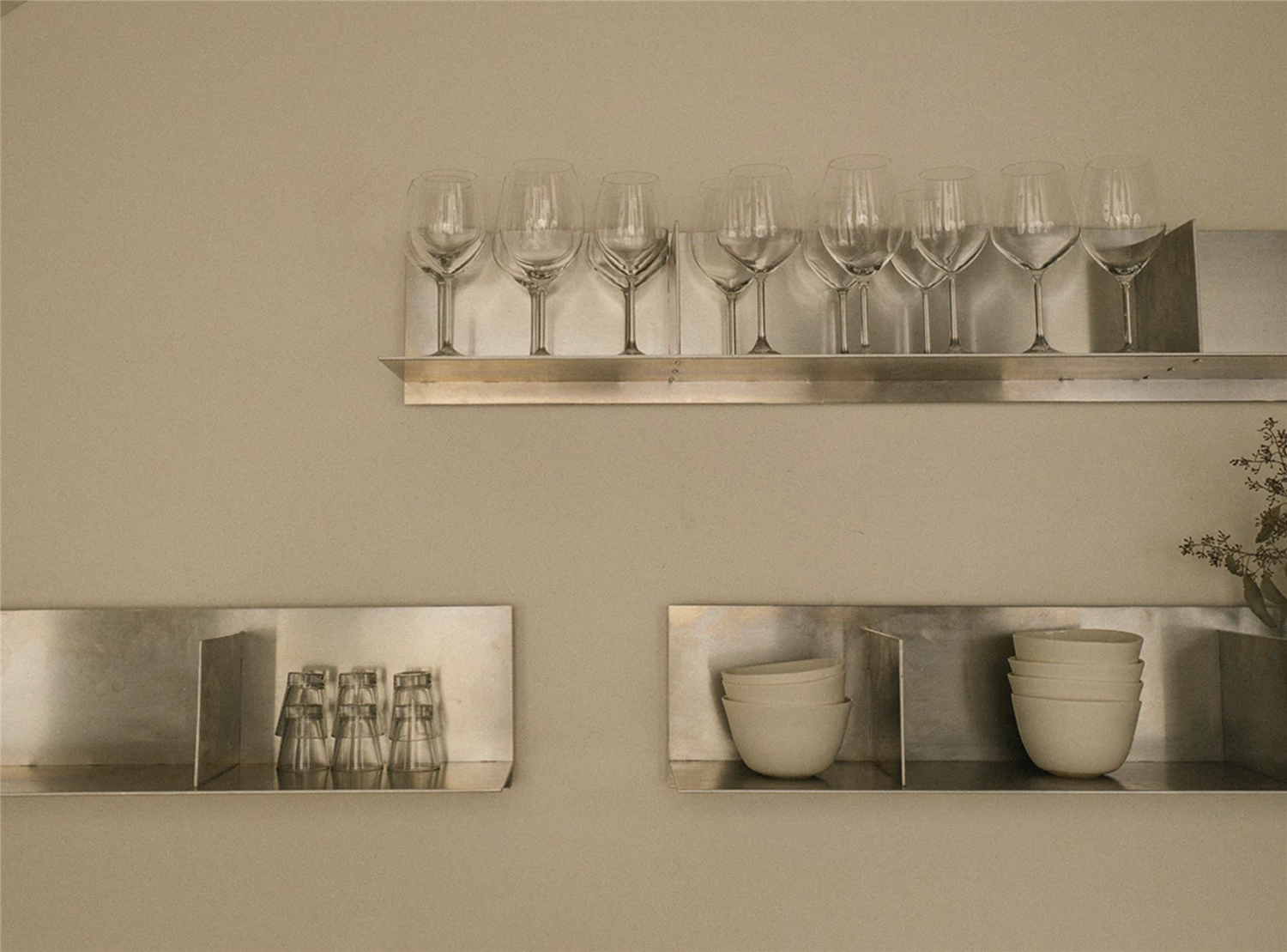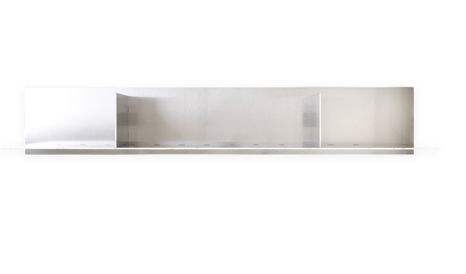 The Rivet Shelf explores basic storing facets within one shape while functioning as a storage and display platform. Based on a riveting technique suitable for making perpendicular joints between separate, laser-cut raw aluminum sheets, the shelf is put together by hand using a hammer in a cold-forming assembly process developed by designer Jonas Trampedach in 2011.