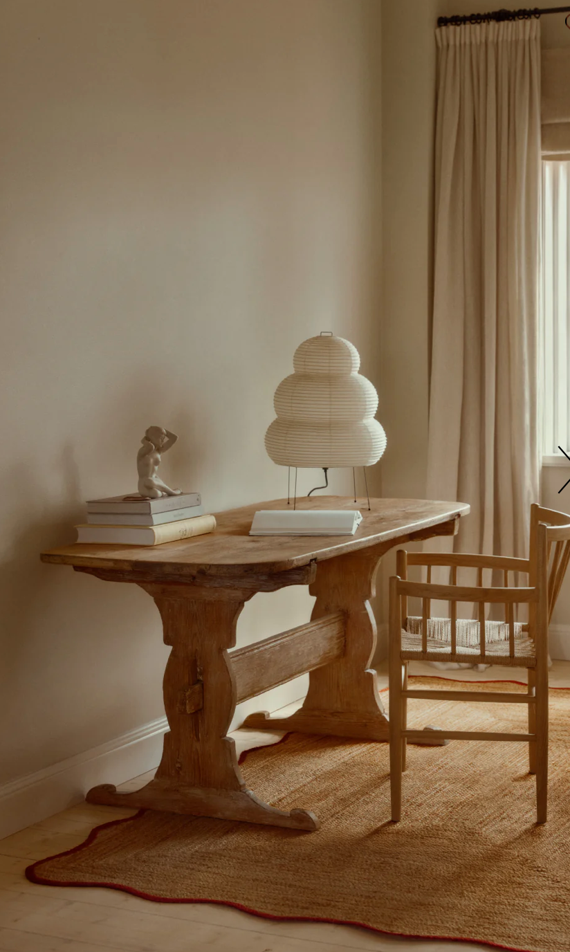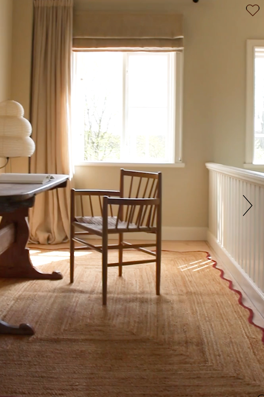 Scallop Jute - Dette teppet er en blanding av lekenhet og italiensk eleganse. Den naturlige jutefargen er innrammet av en bølget kant som skaper en harmonisk kontrast. For å fremheve de myke formene er juten flettet og viklet i sirkler, og hvert teppe er avsluttet med en kant i en nøye utvalgt aksentfarge.