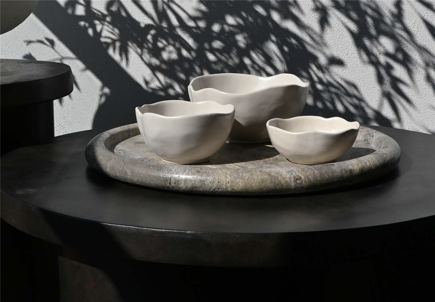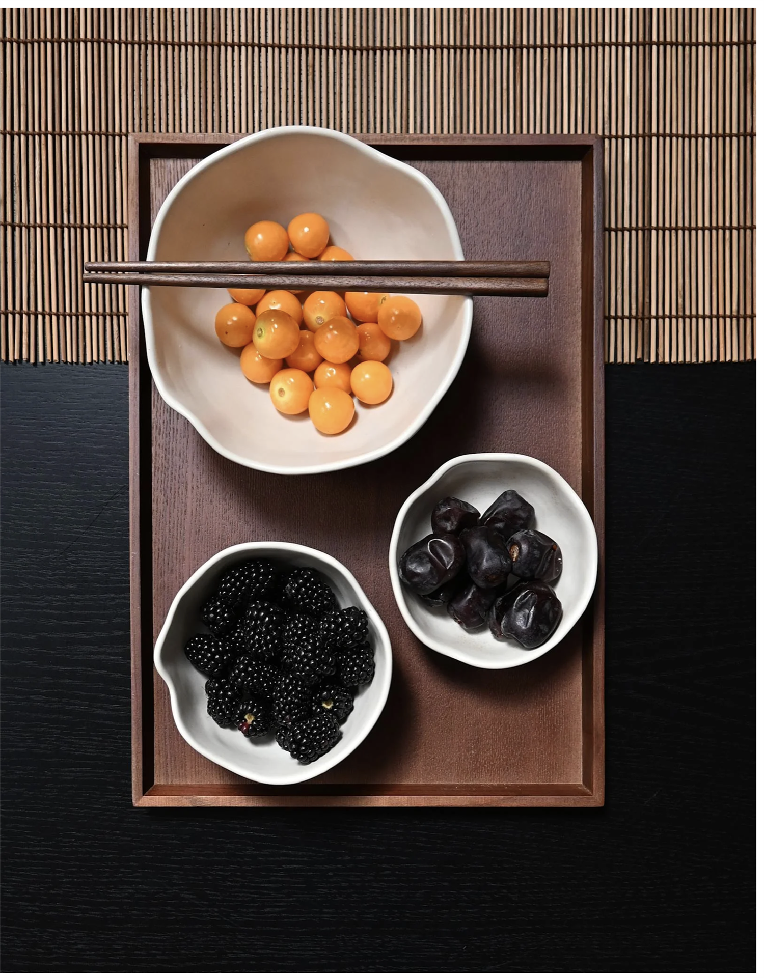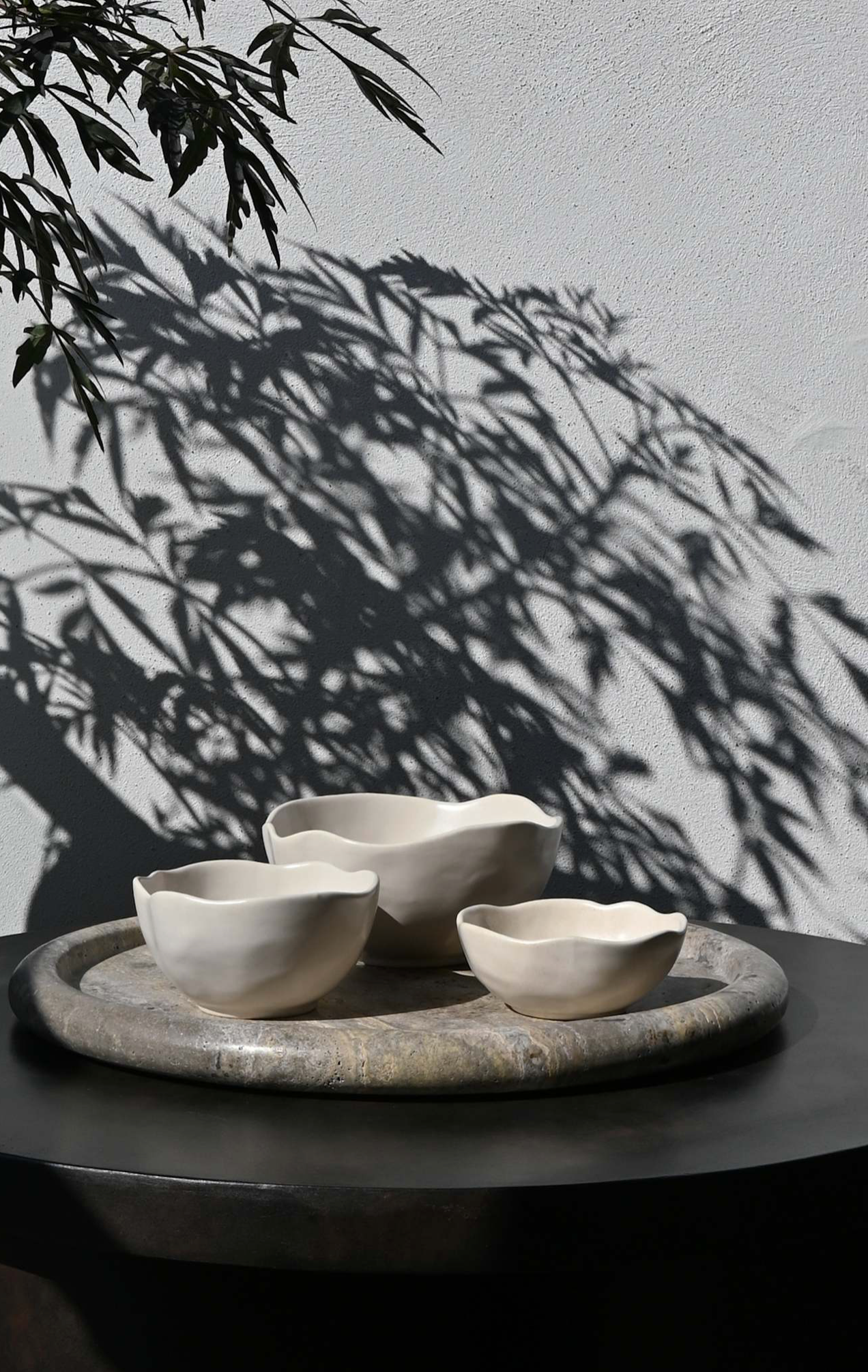 The Native Bowl, Medio, is ideal for daily meals and cozy gatherings, offering just the right size for main dishes. Also available: The Native Bowl, Petit low, is perfect for soy sauce at your sushi table, as an elegant butter dish, for olives, nuts or other small snacks. . The Native Bowl, Mini, is perfect for serving dips, snacks, or little treats, adding a delightful touch to your spread. Finally, the Native Bowl, Petit, is charmingly suited for side dishes, sauces, or personal servings, making every meal feel special.