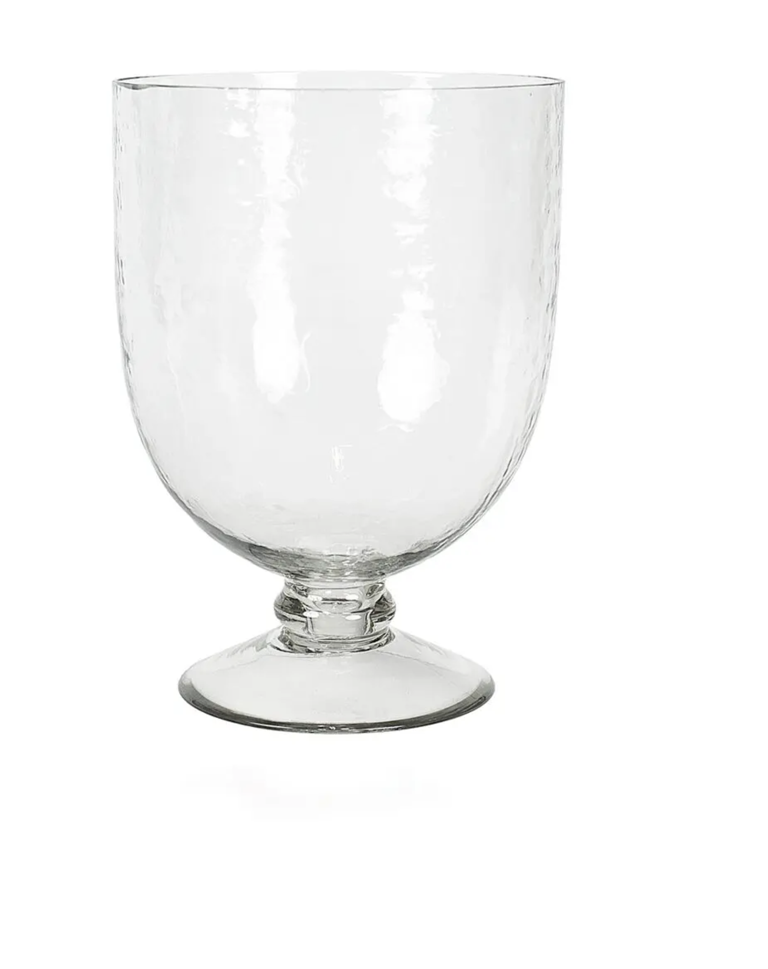 Skål på fot i hamrat glas, inspirerad av traditionella stormglas. Perfekt som både funktionell skål och dekorativt element.