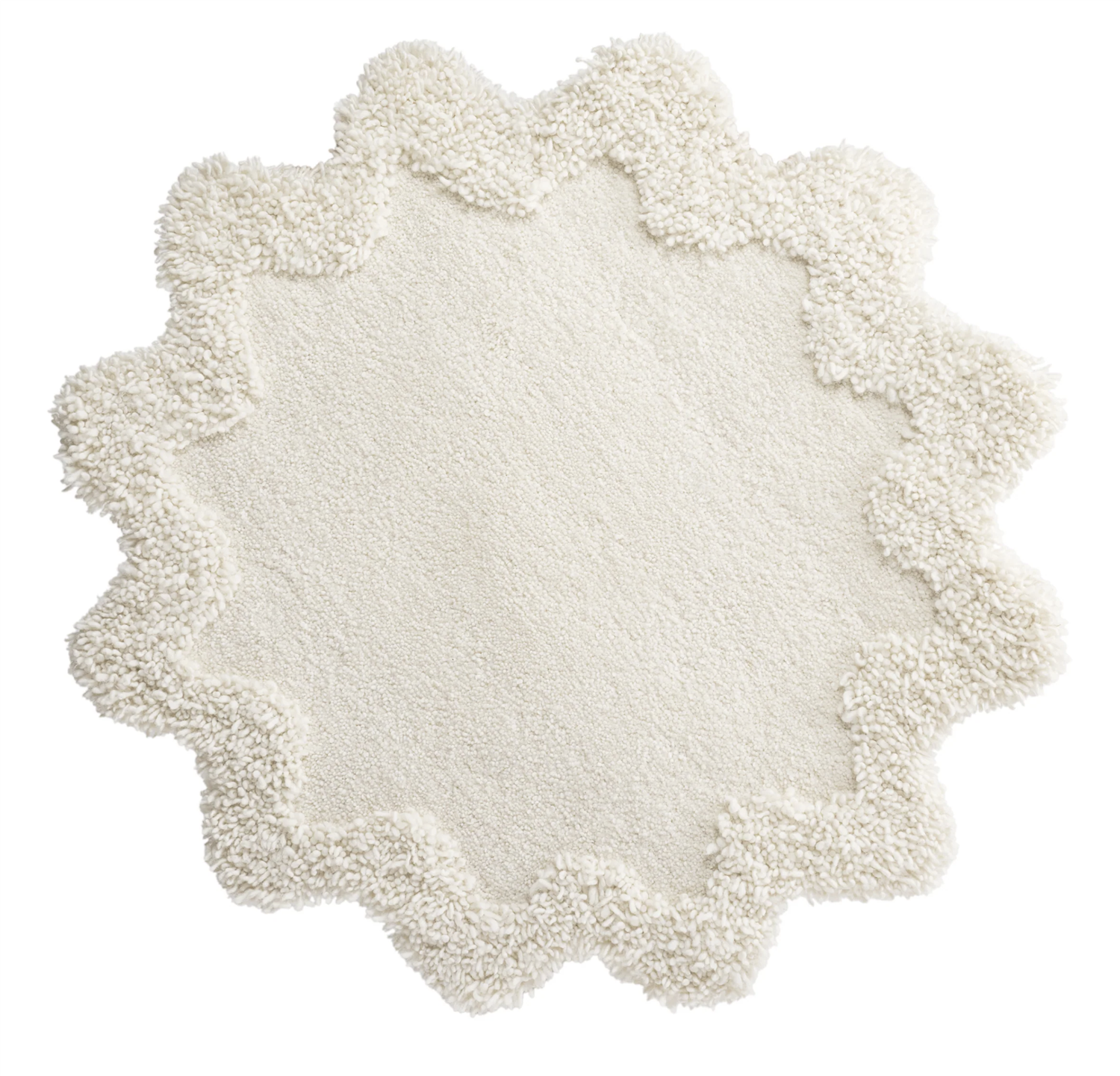 Introducing Snowflake, our very first Christmas tree rug, crafted to bring warmth and elegance to your holiday decor. Snowflake fits beautifully beneath your Christmas tree, creating a cozy and festive ambiance for the season. Hand tufted in naturally hand-spun yarn, this rug features a unique curled texture and slightly raised edges, adding a charming framed effect that enhances its design.