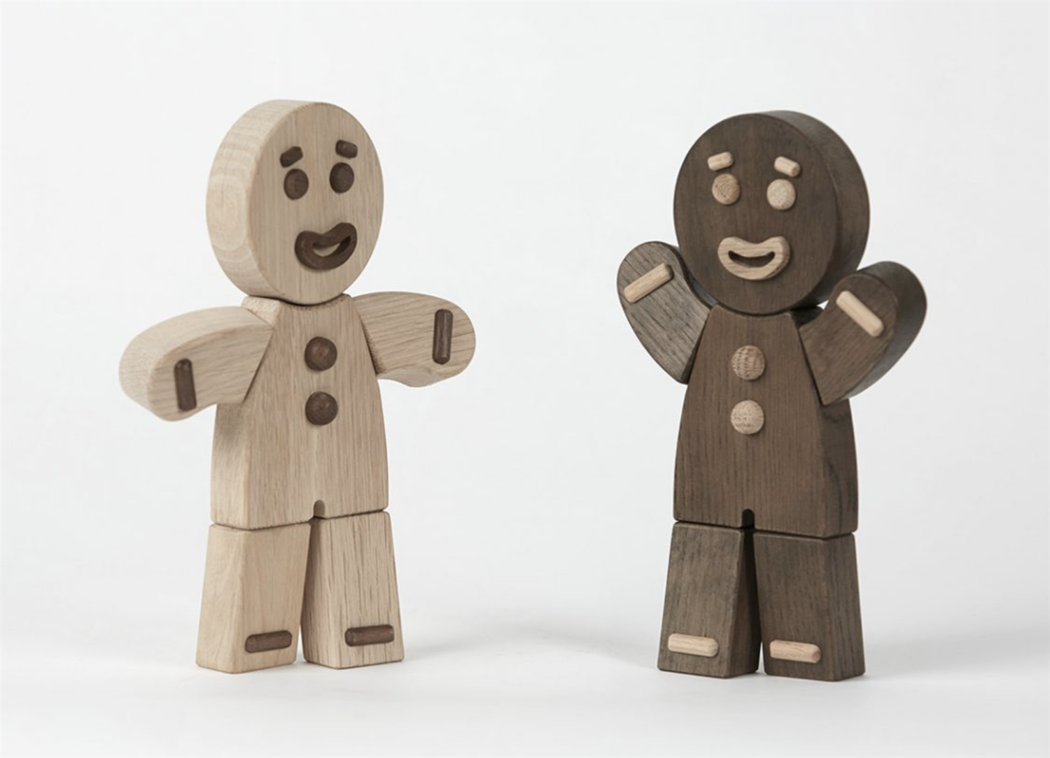 Han er stadig værd at løbe efter. Her skabt med de bedste ingredienser: massivt egetræ i 2 farver og magneter, så hans udtryk nemt kan tilpasses. Denne gingerbread man skal du holde godt fast i, hvis du er til lækkert design.