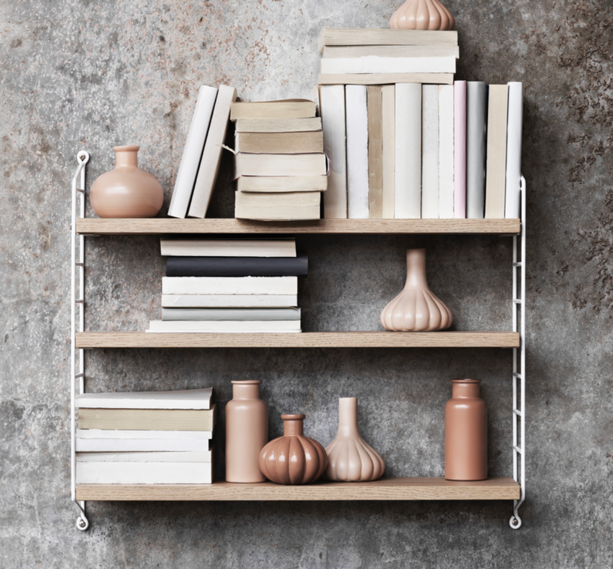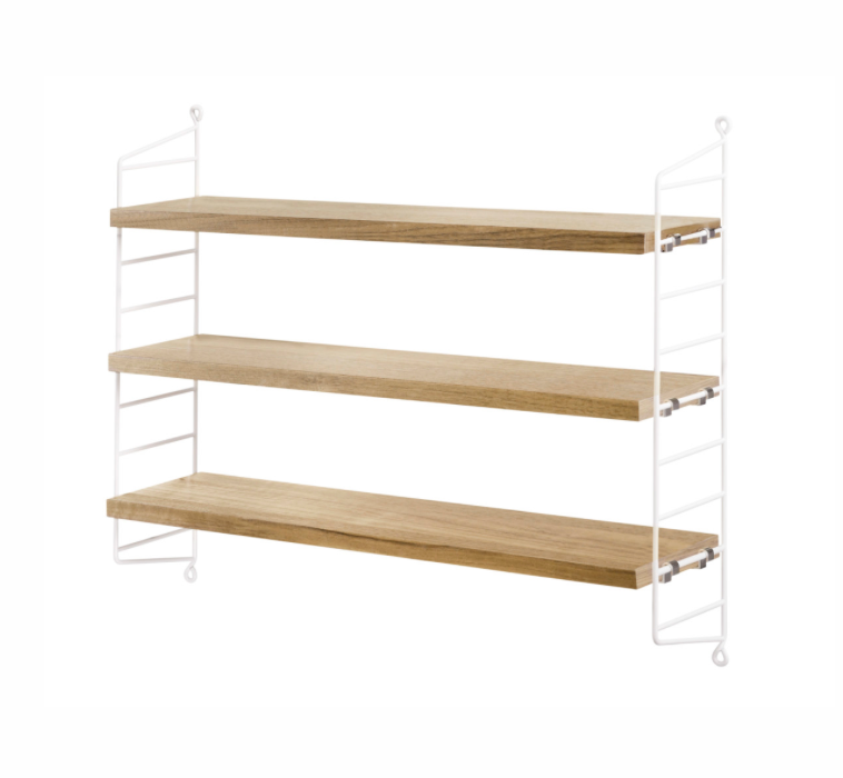 String® Pocket is sold as a complete shelf but is equally flexible as String® System. String® Pocket invites creativity and personality where you can combine two or three String® Pocket shelves into one larger shelf. Mix and match different colours and wooden alternatives to suit your style and preferences. Since the shelf is neat and practical it fits equally well as a nightstand as an extra shelf in your hallway. String® Pocket is sold as one complete unit containing two wire panels, height 50 cm, and three shelves, width 58 cm and depth 15 cm.