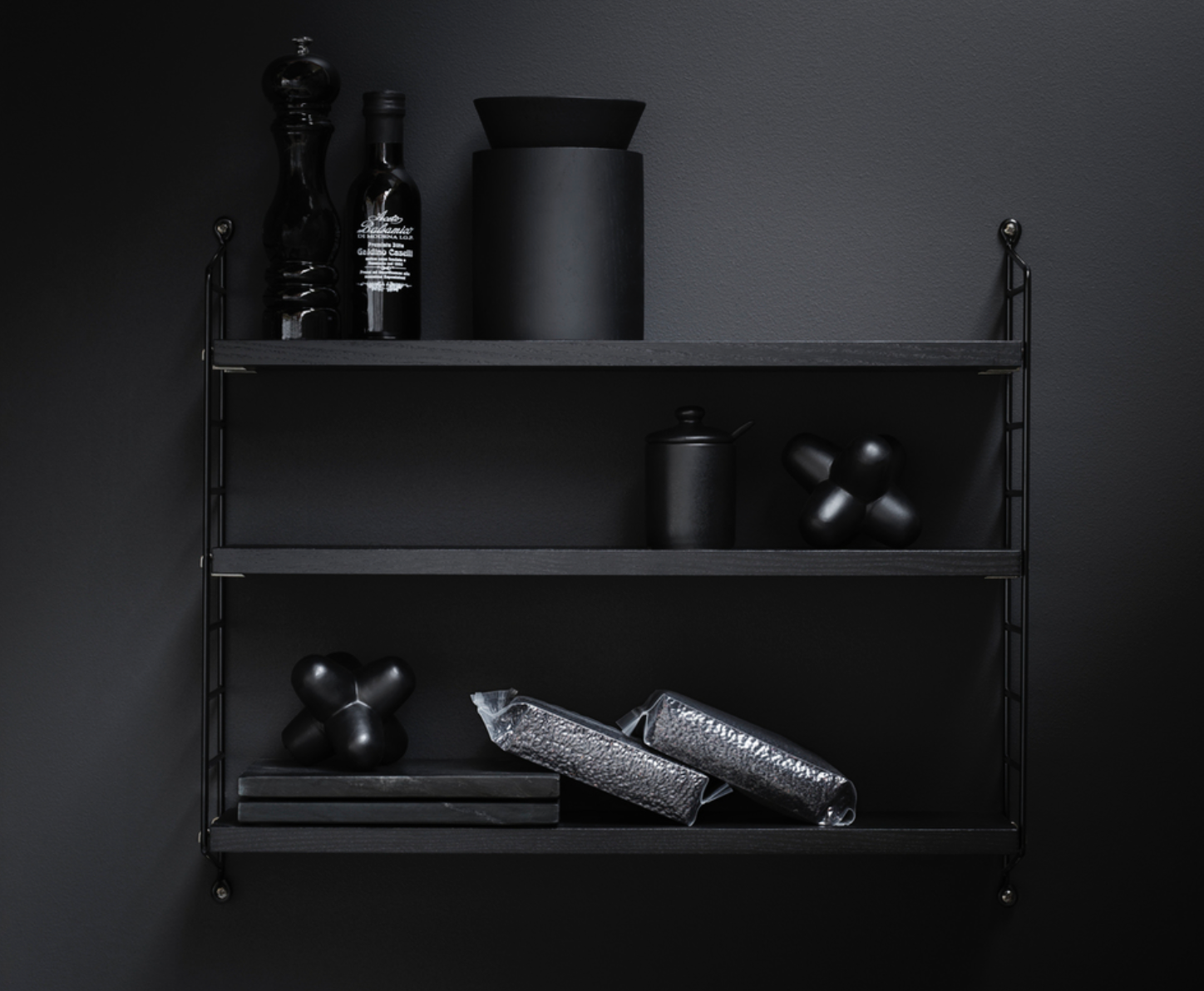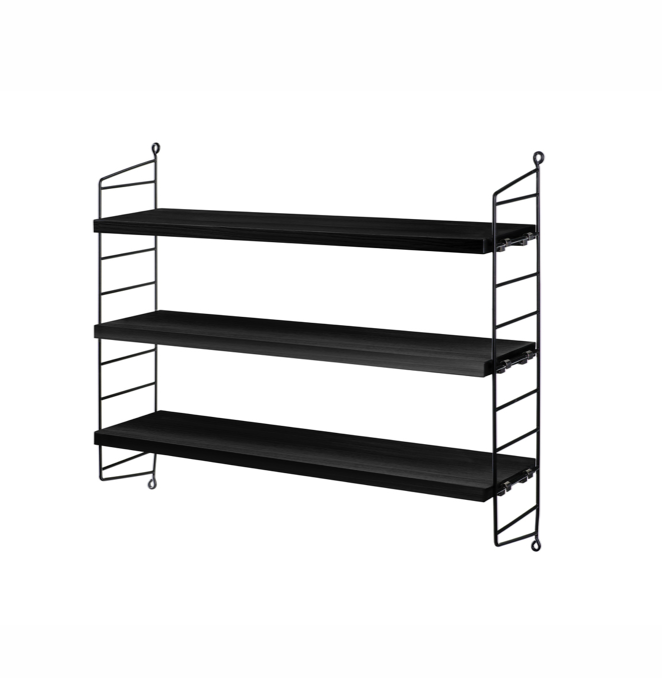 String® Pocket is sold as a complete shelf but is equally flexible as String® System. String® Pocket invites creativity and personality where you can combine two or three String® Pocket shelves into one larger shelf. Mix and match different colours and wooden alternatives to suit your style and preferences. Since the shelf is neat and practical it fits equally well as a nightstand as an extra shelf in your hallway. String® Pocket is sold as one complete unit containing two wire panels, height 50 cm, and three shelves, width 58 cm and depth 15 cm.
