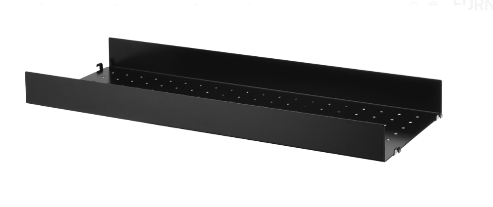 The metal shelves with high edge are available in two widths, 58 and 78 cm, along with two depths, 20 and 30 cm. The shelves are easy to move around and fit into wire and plex panels from String® System if the shelves and panels have the same depth. The 7 cm high edge creates character and valuable storage space. The perforated shelves are the optimal base to be creative with our accessories. Add hooks, rods, or hanger racks to design your own unique shelf. Each packaging contains one metal shelf.