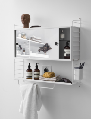 The rods are created to optimize a shelving combination and fit together with metal and galvanized shelves. The rods are available in the following widths: 24 cm, 53 cm, and 72 cm. The rods with widths 53 cm and 72 cm must be mounted along the width of the shelf, whereas the 24 cm wide rod can be mounted along the width or depth, if the shelf has depth 30 cm. The rods increase functionality and makes it possible for even more creative storage solutions. They are the optimal accessory for your hallway or wardrobe shelf since they make is possible to add coat-hangers from String® System. It is also a great spot to hang scarves, shawls or why not the dog leash. Each packaging contains one rod.
