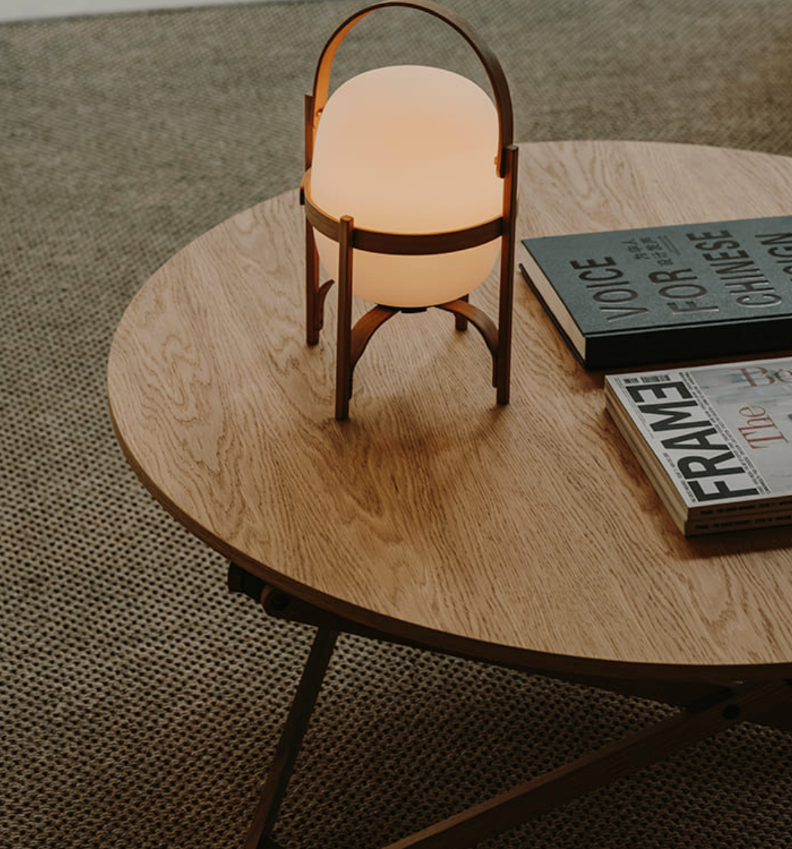 A cordless, portable version, Cestita Batería is a lantern that creates an ambience of pleasure anywhere; depicting Chinese shadows in the garden, emanating light from any corner, or on a table. The perfect balance of technology and craftsmanship, the rechargeable lamp offers two lighting intensities.