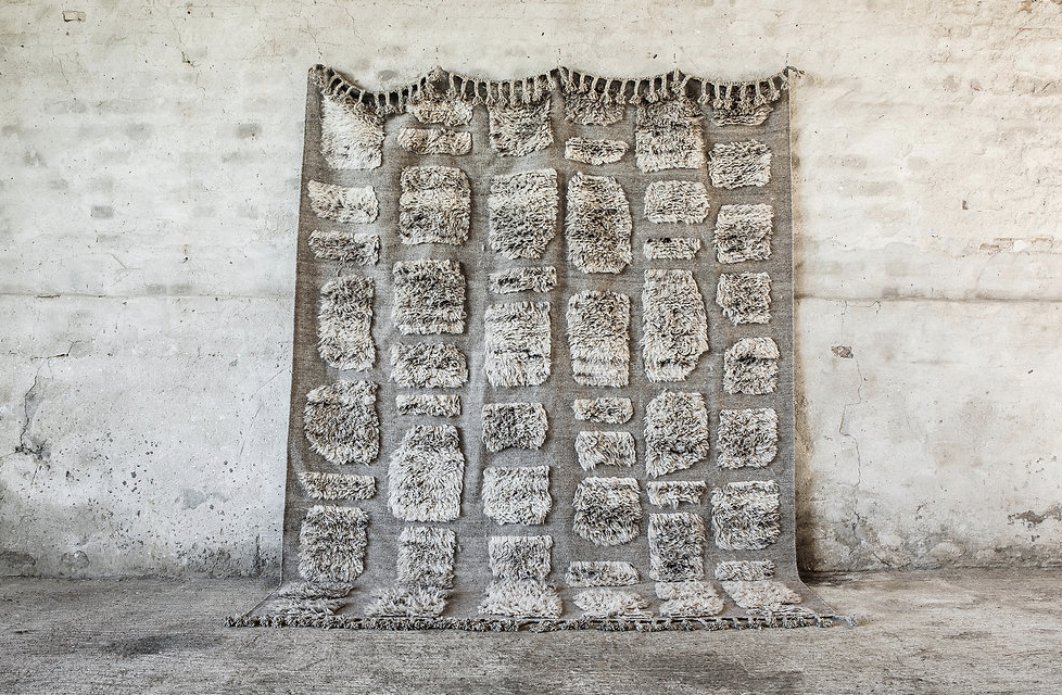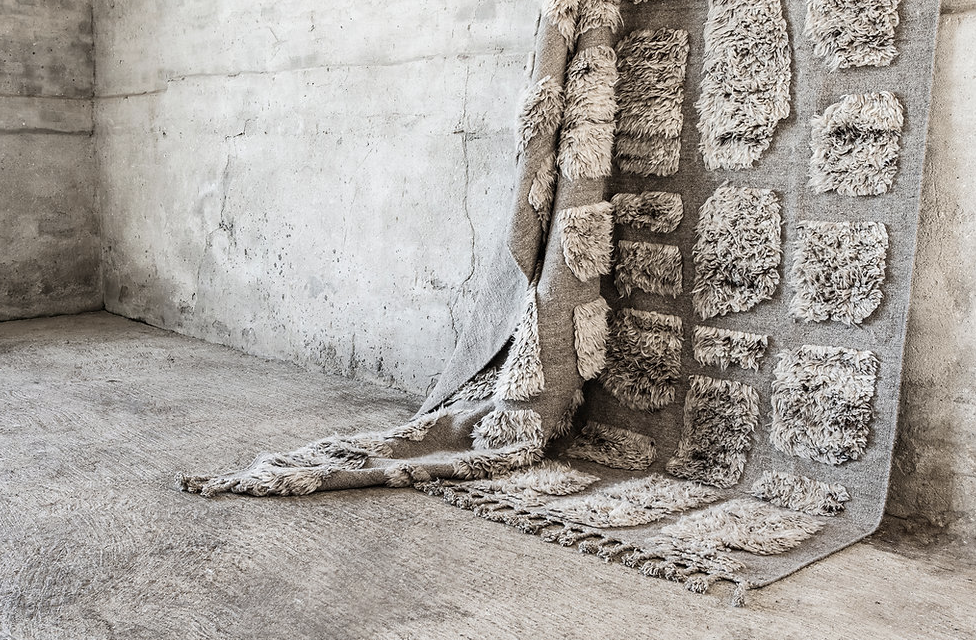 no.03 is a contemporary yet timeless hand-knotted rug in natural wool. The soft fields of shaggy wool pattern creates an organic and bohemian vibe to this signature piece. The rug is in 100% natural and unbleached wool in a soft limestone grey and clay. A braided chunky fringe edge elevates the end line and adds an arty and ethnic detail.