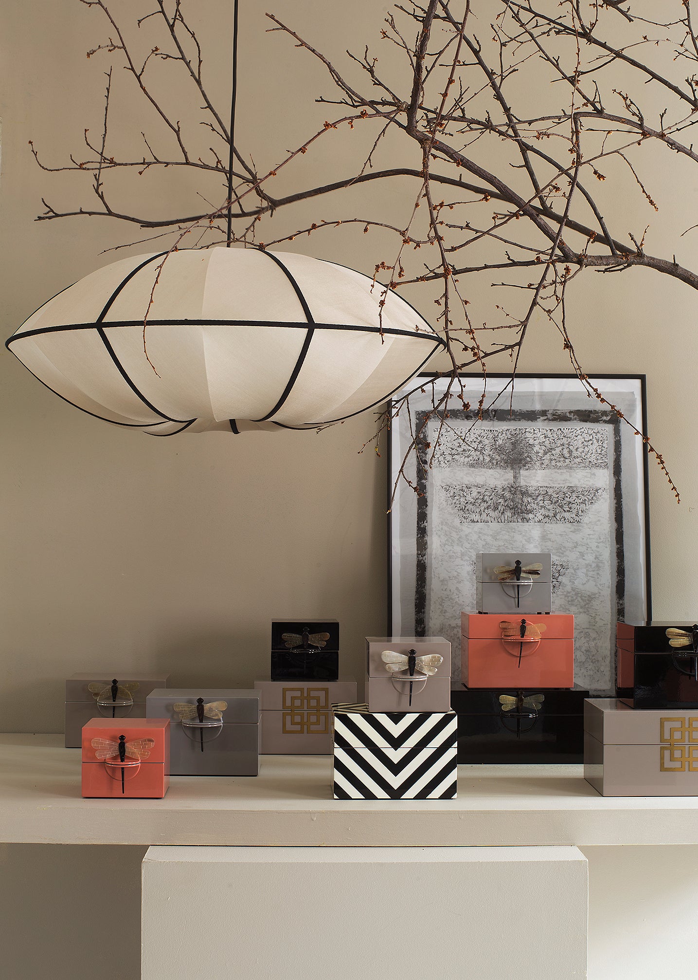 Indochina-skjermene fra danske Oi Soi Oi er håndlaget av silke og bomullsbånd, og er noen av de fineste lampeskjermene vi har sett på lenge. Vi drømmer om å ha de hengende både på soverommet, i stuen og gangen! Merk at lampeskjermen kommer uten oppheng og lyskilde, dette må kjøpes separat.