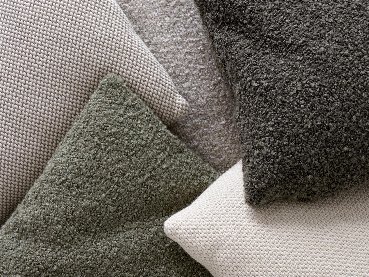 The cushion is made from cotton, recycled polyester and acrylic, that has been weaved gently together using the classic boucle technique, which gives this cushion texture and a soft touch. The cushion is finished with an invisible zipper to create a strong and minimalistic look