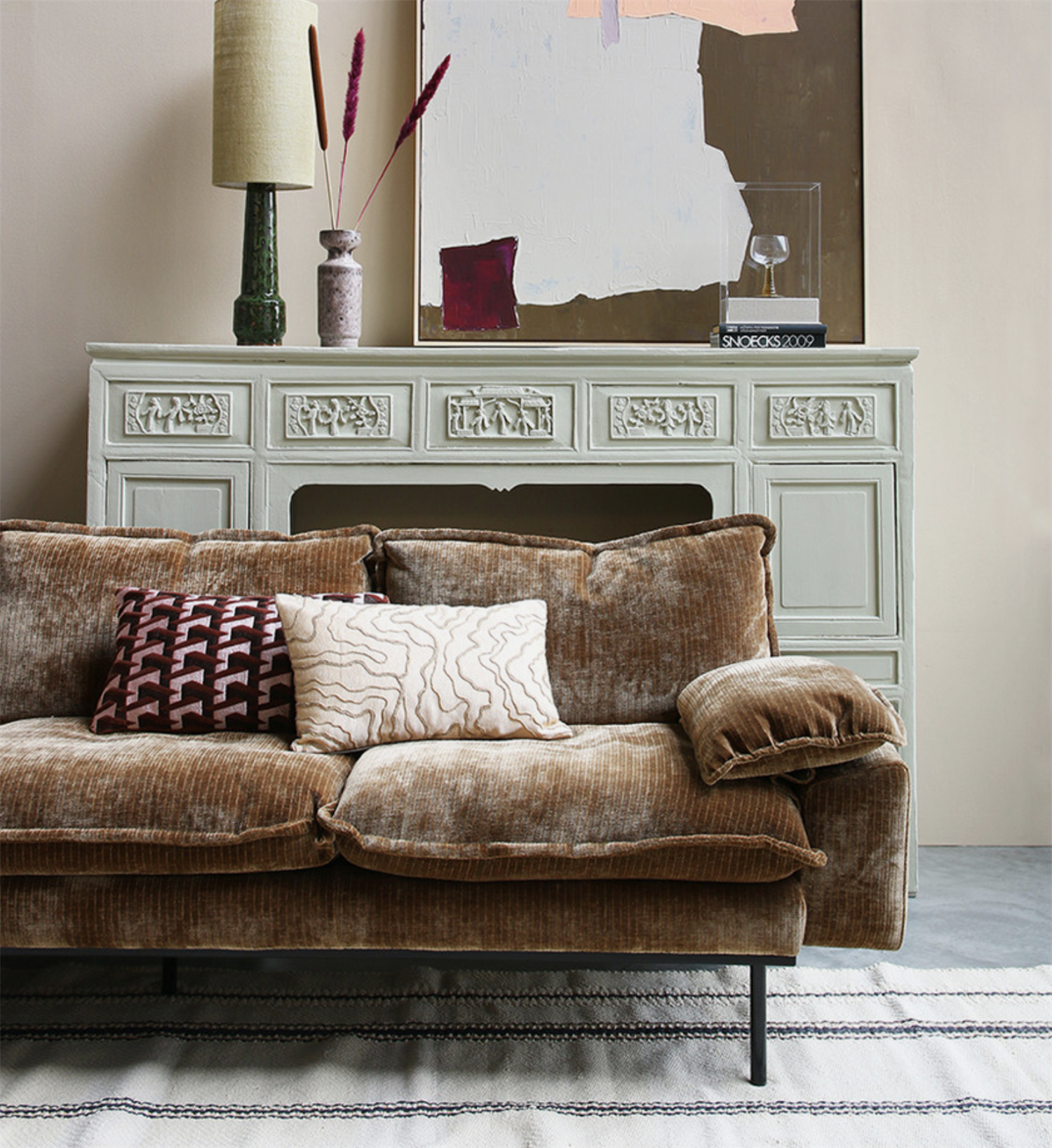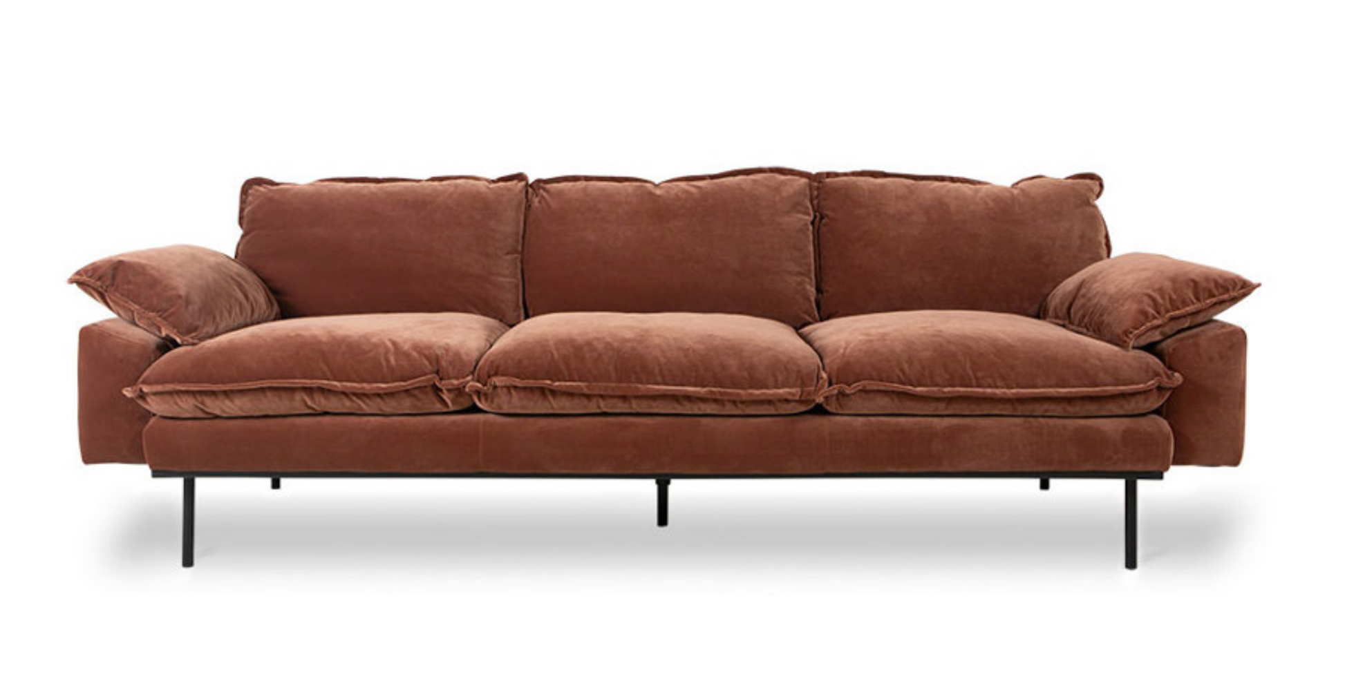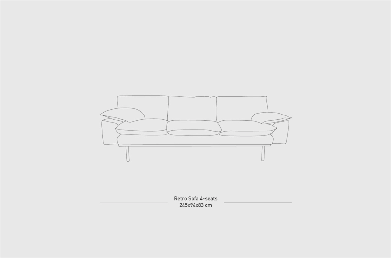 Spice up your room with this 4-seater sofa in retro style in velvet corduroy aged gold. The sofa has small black lacquered metal legs