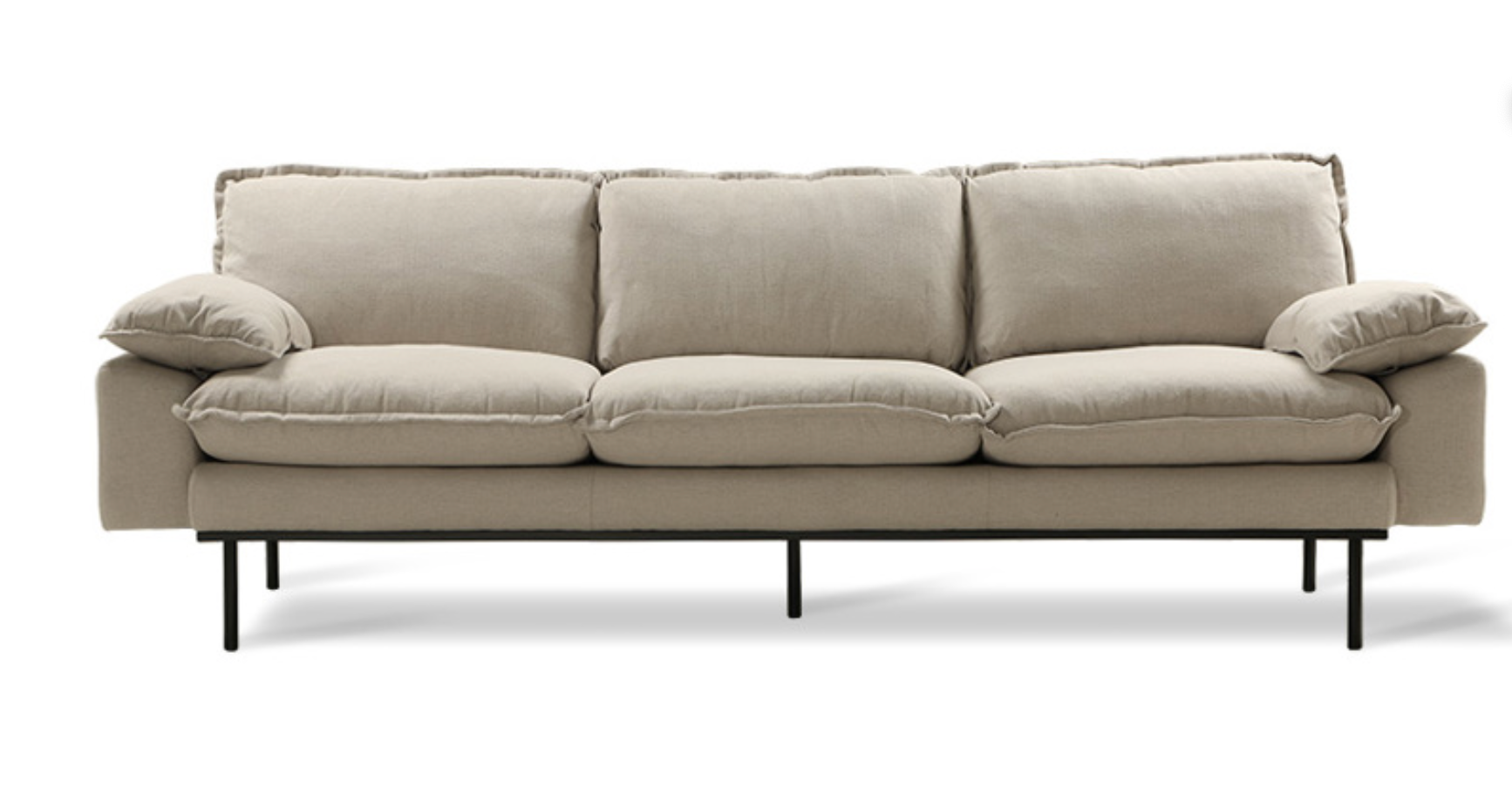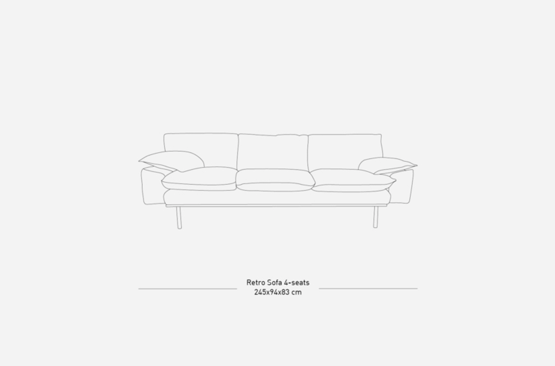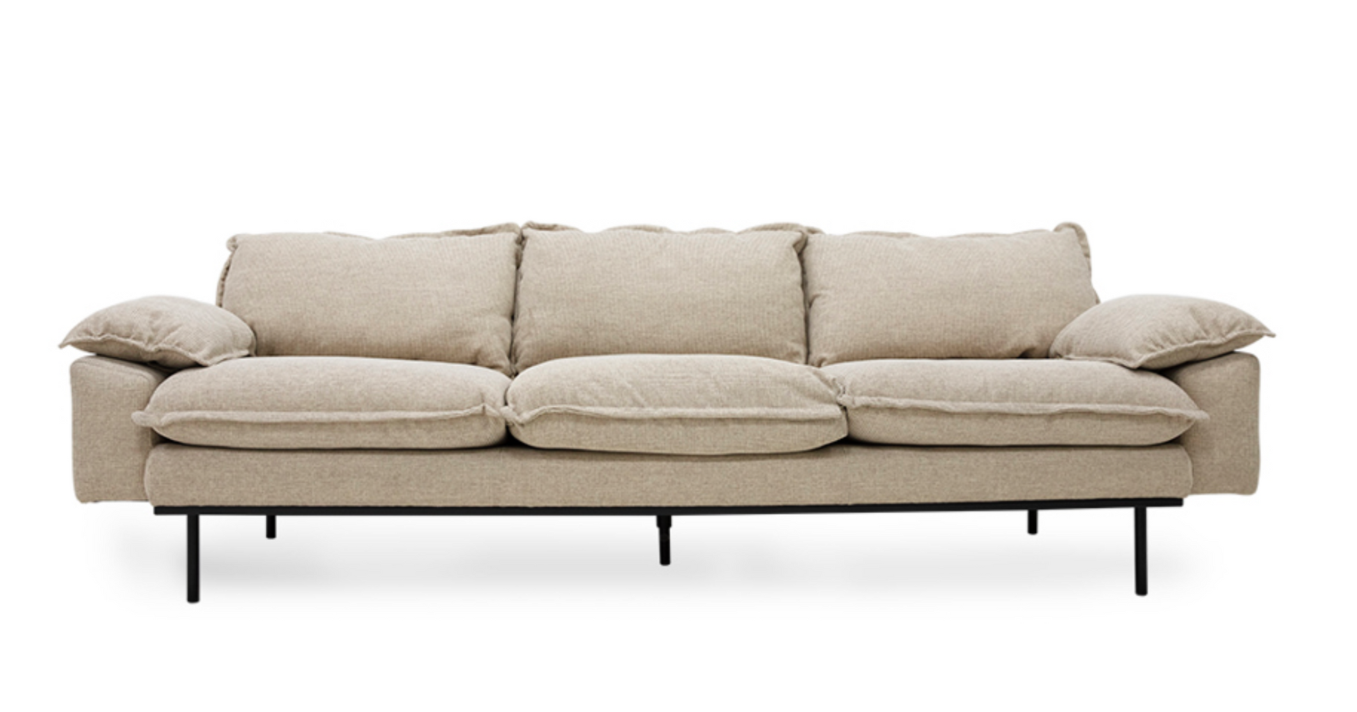 Spice up your room with this 4-seater sofa in retro style in velvet corduroy aged gold. The sofa has small black lacquered metal legs