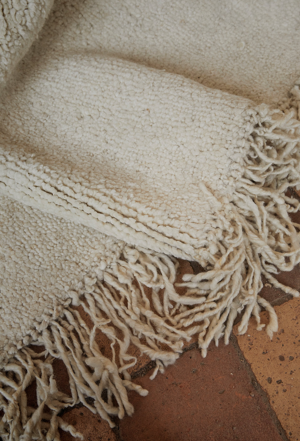 The rug is woven in natural and unbleached New Zealand wool.