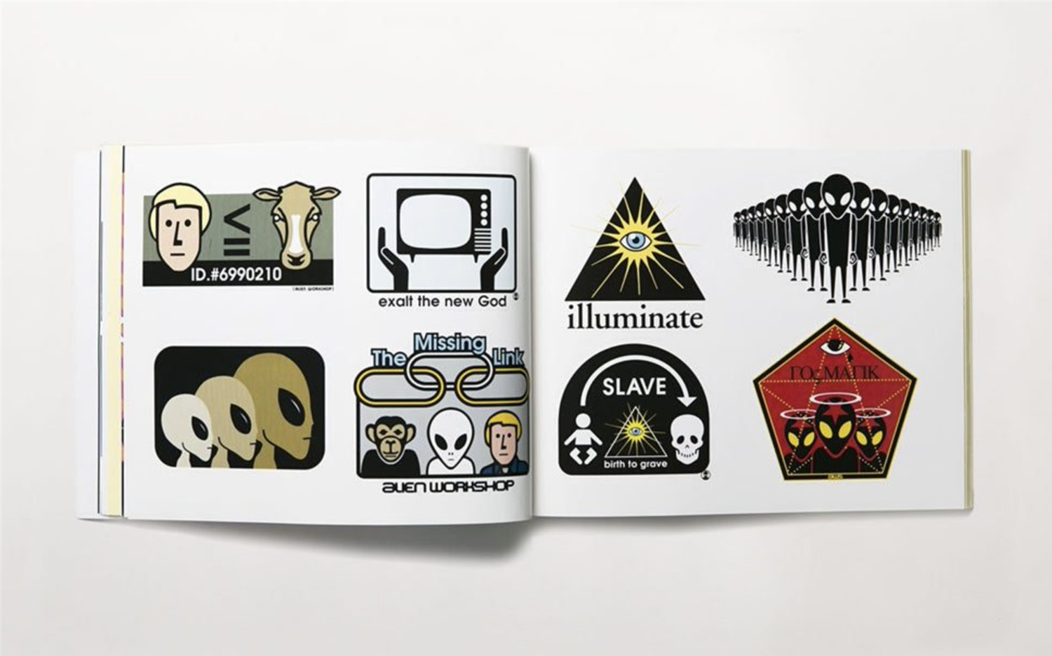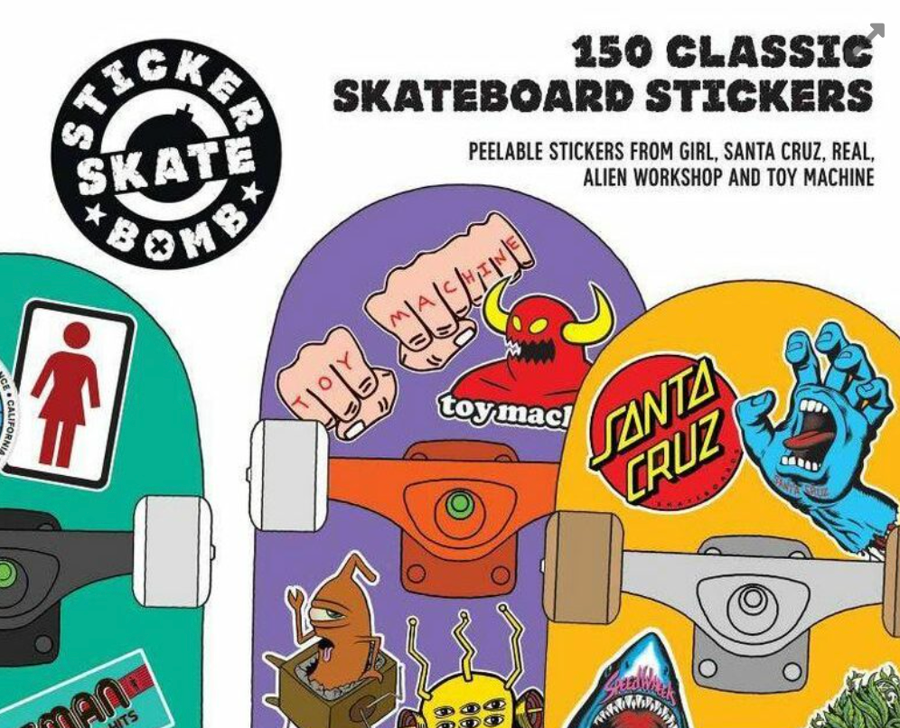 Kuleste boka med 150 skateboard klistremerker fra Girl, Santa Cruz, Real, Alien Workshop og Toy machine.