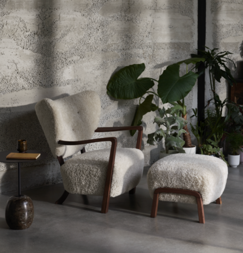 Wulff Pouf ATD3 oiled walnut w. sheepskin 17 mm moonlight