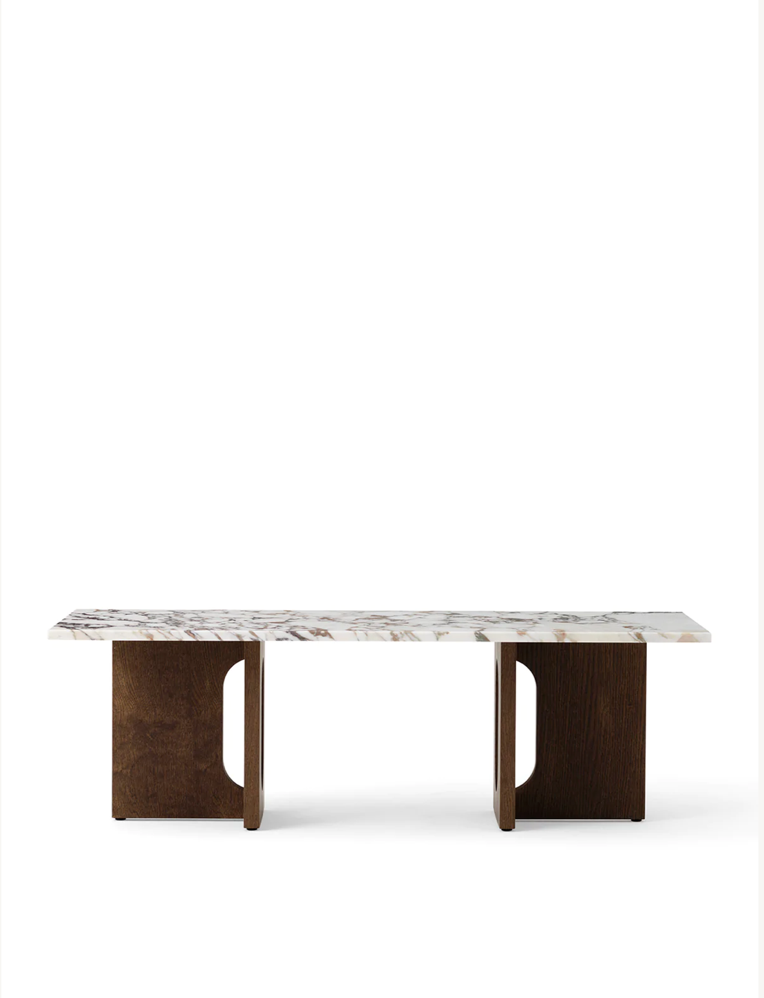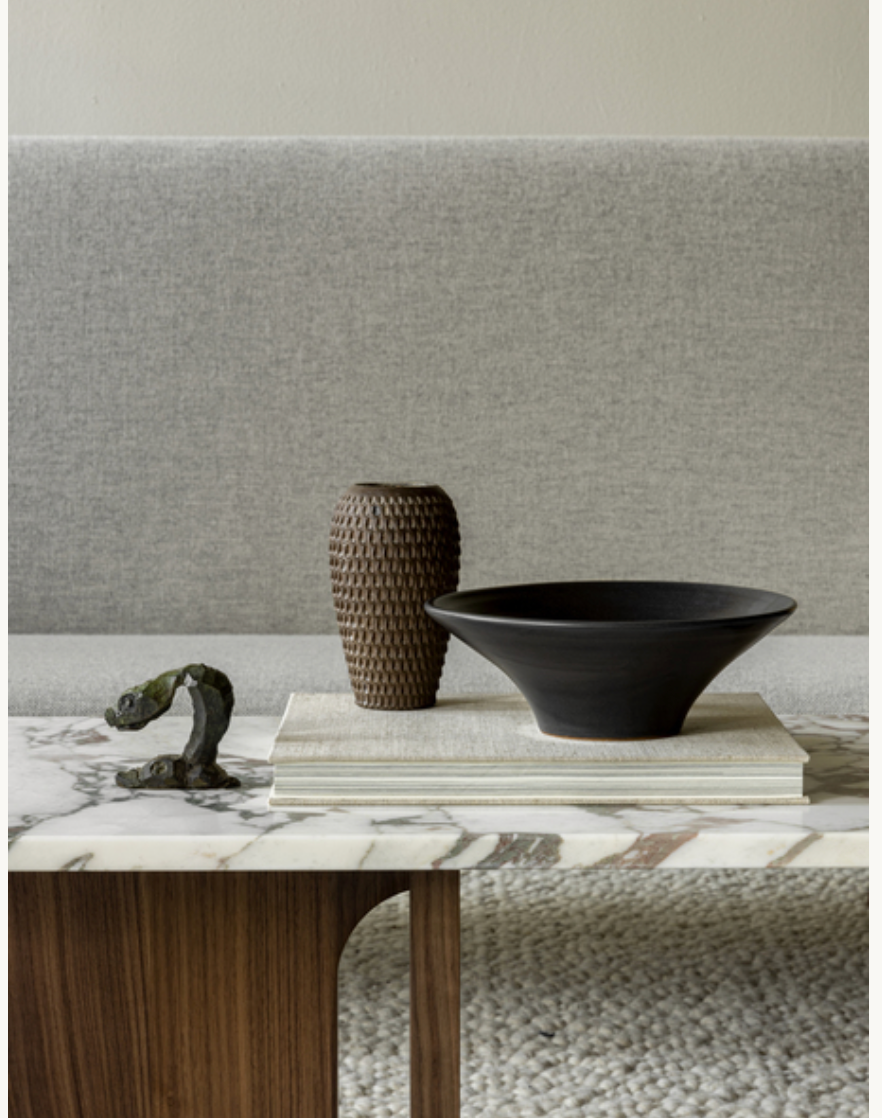 Originally developed by Norwegian architect and designer Danielle Siggerud as a modern and versatile table for MENU’s former showroom café, the Androgyne Collection profiles simple silhouettes and refined materials. Celebrating craftsmanship and wood, the Androgyne Lounge Table is versioned in natural or dark stained oak or walnut, as well as with the option of a kunis breccia stone or calacatta viola marble tabletop. With a shape and function made for everyday settings, the versatile, modernist design makes it possible to use as both a lounge table or bench for piles of books or statement decorations