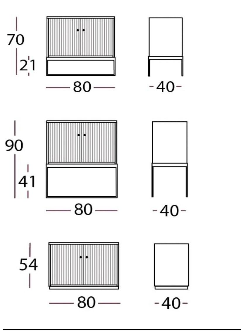 80 x 40 x h 70 / 90 cm (1 shelf)