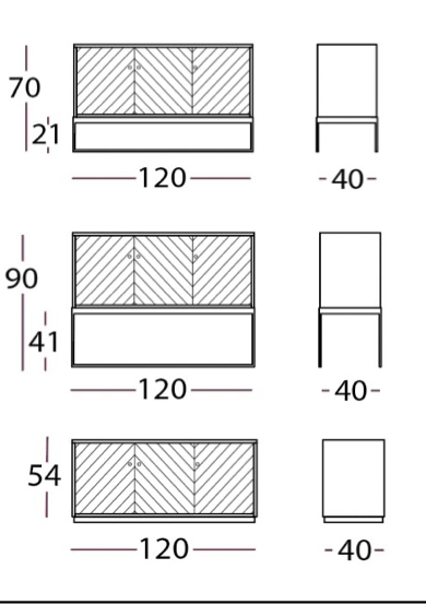 120 x 40 x h 70 / 90 cm (1 shelf)