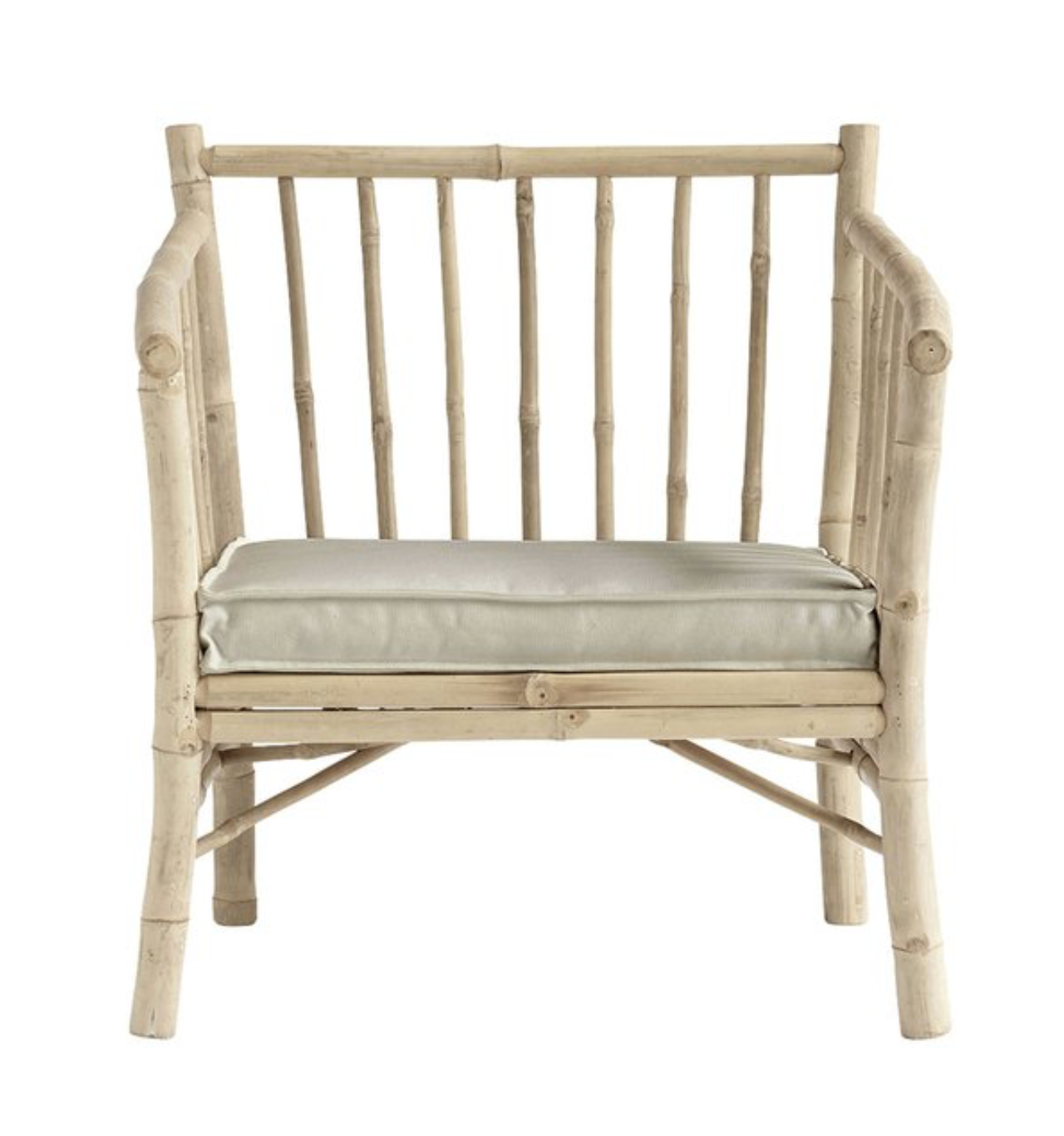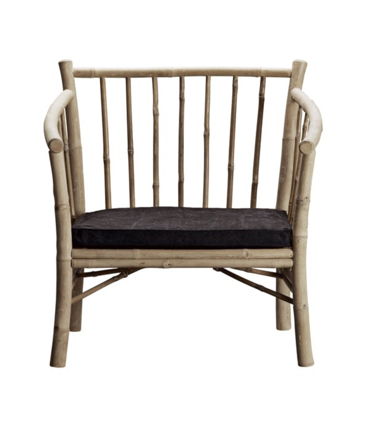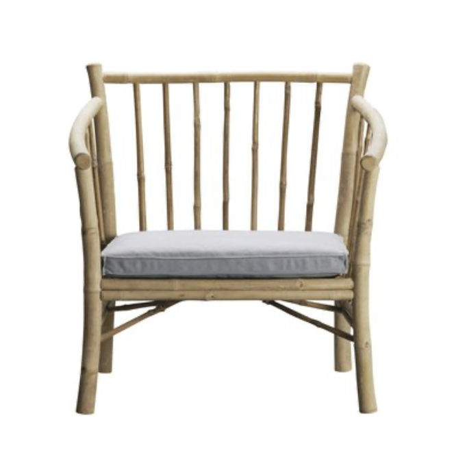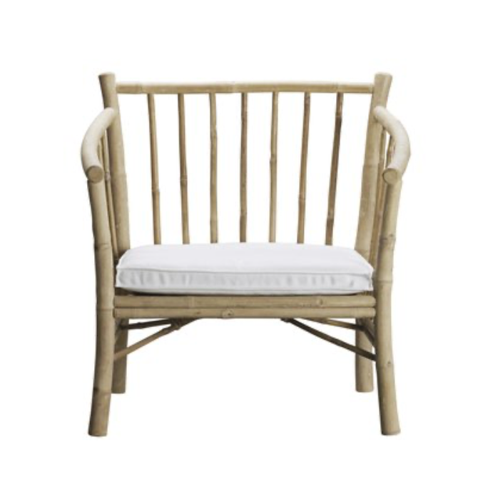 Denne lounge stol i bambus med bløde organiske former, og behagelig hynde i 100% bomuld, er let at integrerer i indretningen. Det skandinaviske design og det naturlige materiale, tilføjer et naturligt og hyggeligt element i din indretning på terressen, såvel som i hjemmet. Vores bambusmøbler er håndlavede med tapsamlinger, der gør stolen enkelt og elegant at se på, og får de bedste detaljer frem i bambussen. Vores bambusmøbler har været en del af kollektionen i mange år og er stadig blandt vores mest populære produkter. Møblerne er repræsenteret verden over på hoteller, beach clubs, restauranter og i private hjem. I et bambusmøbel får du et smukt naturligt design som er let at flytte rundt på og som holder i mange år.