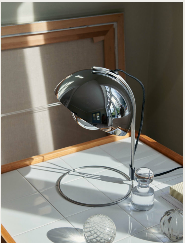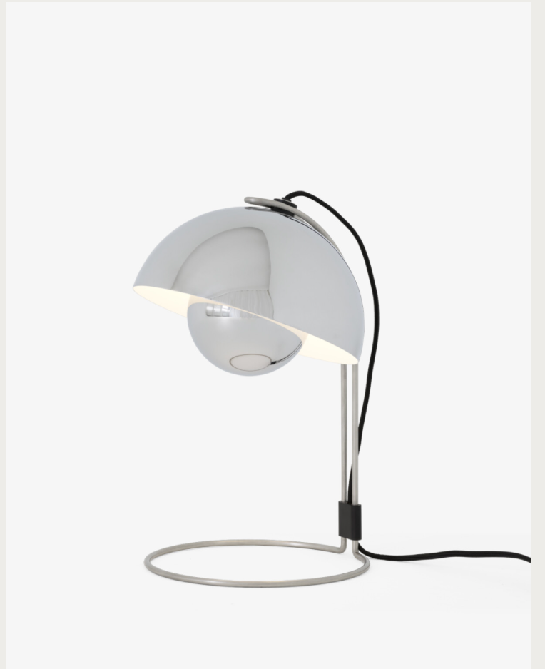 Among the most norm-breaking Danish designs of the 1960s, the iconic form of Verner Panton's Flowerpot is available in a series which now consists of seven different models. The uniquely designed VP4 model adapts the form of the Flowerpot into a stylish table lamp.