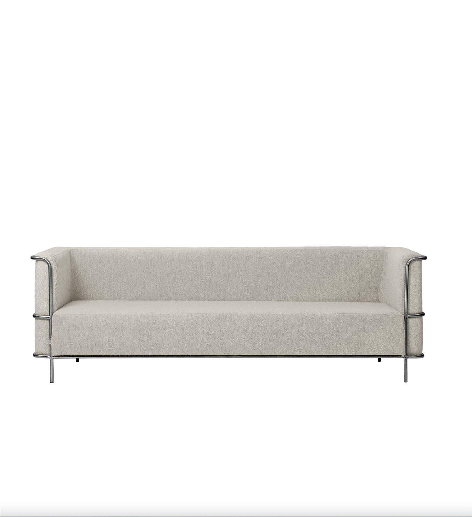 Simple and attractive design that gives this 3 seater a timeless and modern design-approach. The Modernist Sofa adds a relaxed and accessible aura to your home. The solid stainless steel frame of the Modernist sofa is first of all classy and elegant and a key design feature that also provides a solid construction. The upholstery is made using durable, high-density foam covered with beige bouclé for extra super soft feel. The upholstery follow the curves of the stainless steel frame in the most elegant way forming both the backrest and armrest of the sofa in one single movement. The Modernist Sofa is available in a grey wool 3 seater and as a 2 seater.