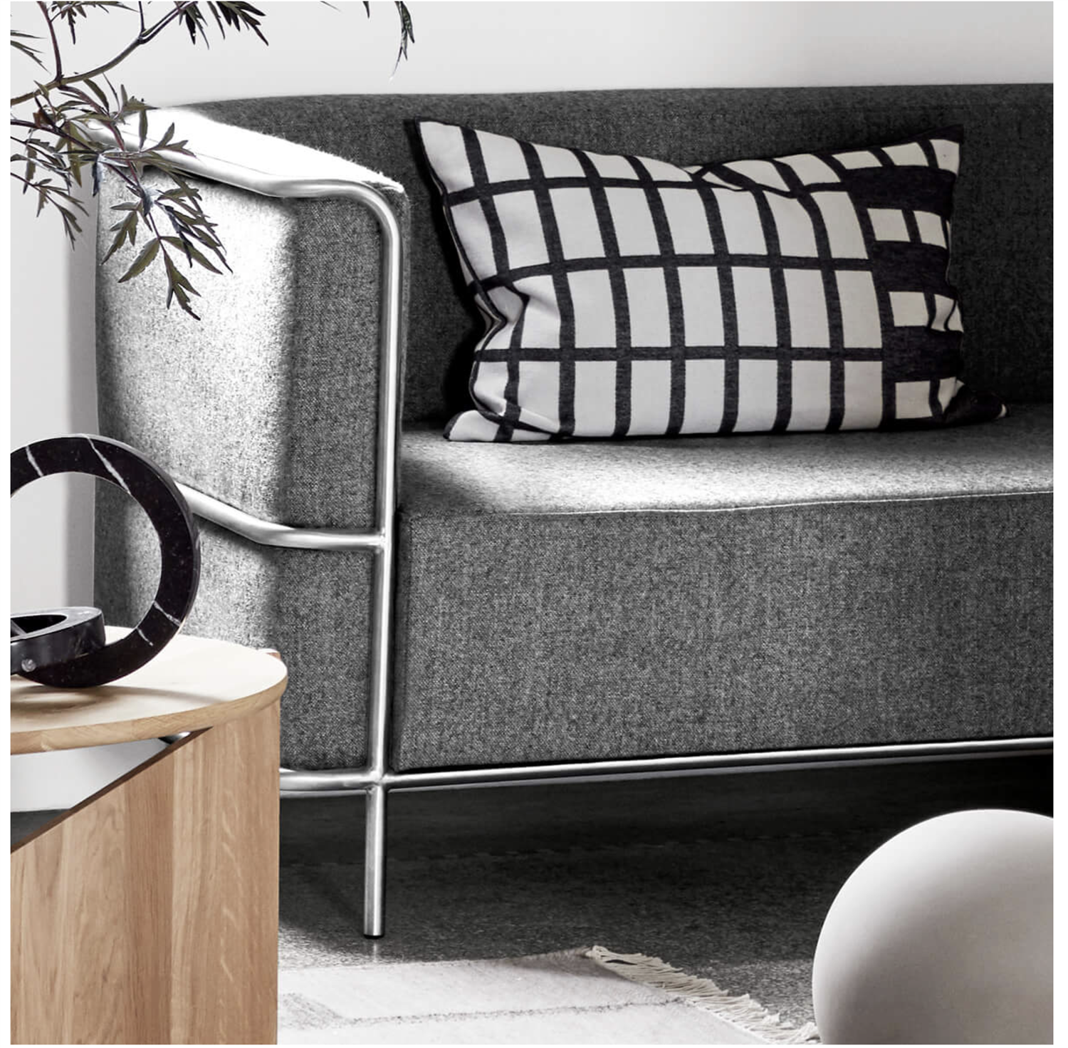 Simple and attractive design that gives this 3 seater a timeless and modern design-approach. The Modernist Sofa adds a relaxed and accessible aura to your home. The solid stainless steel frame of the Modernist sofa is first of all classy and elegant and a key design feature that also provides a solid construction. The upholstery is made using durable, high-density foam covered with beige bouclé for extra super soft feel. The upholstery follow the curves of the stainless steel frame in the most elegant way forming both the backrest and armrest of the sofa in one single movement. The Modernist Sofa is available in a grey wool 3 seater and as a 2 seater.