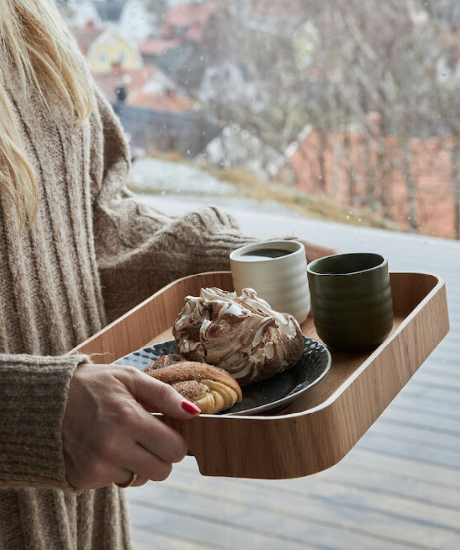 Hanna bricka är tillverkad i FSC-märkt rödek - ett älskat material som är hållbart och passar i alla hem. Brickan är rektangulär med böjda kanter. Handtagen är integrerade för en praktisk och stabil funktion. En bricka i snygg design för varje dag, månad och år in i framtiden.