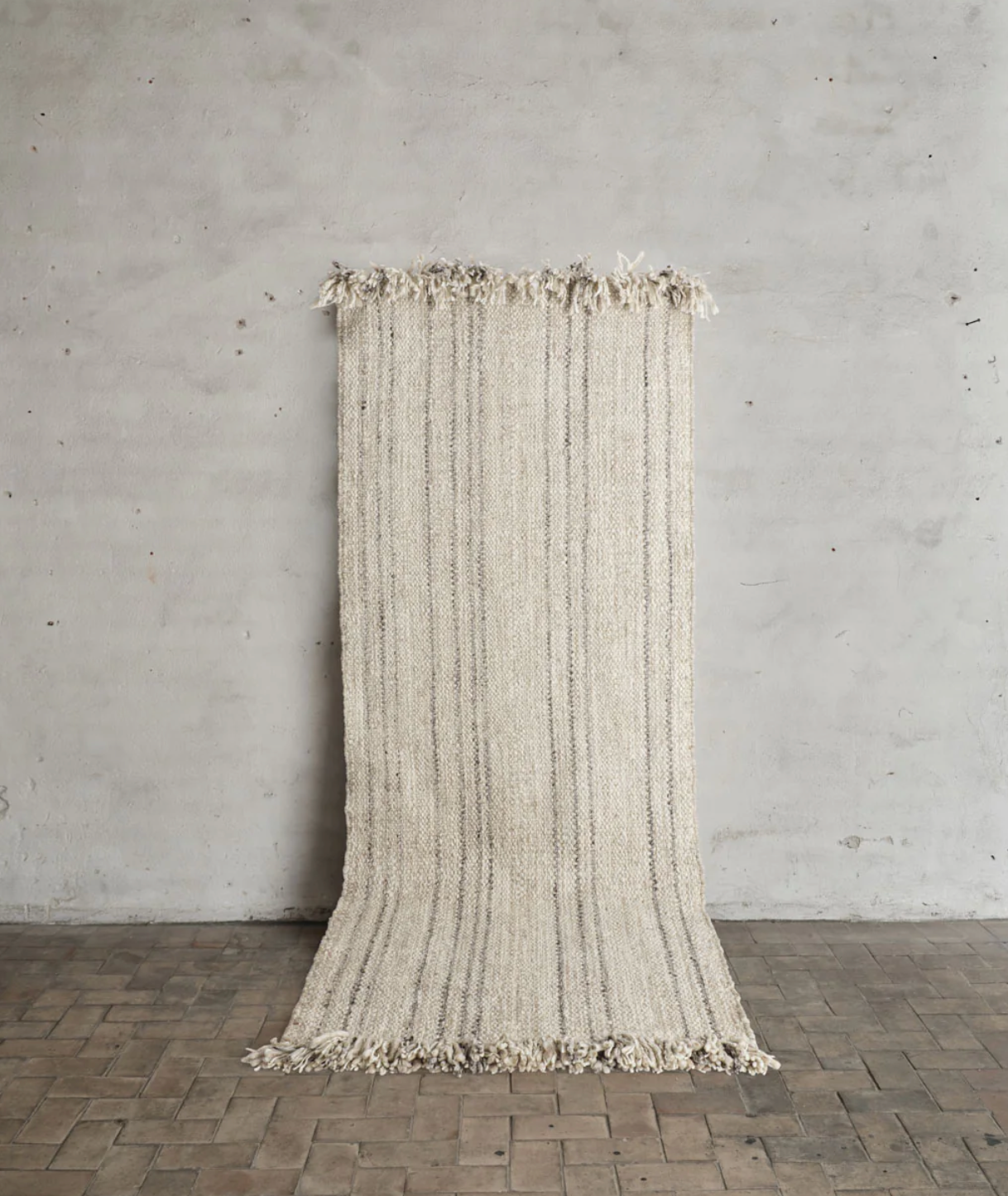 no.06 has a mid beige melange foundation with a soft sandy shaded stripe, creating a harmonious and delicate effect. This colonnade are designed with the warp running as fringe that elevate the design, providing extra details while exuding a serene ambiance in your room.-