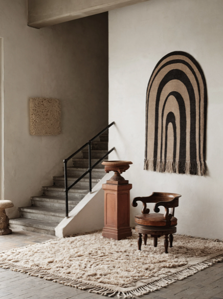 no.13 is fully hand-knotted and sports a hand cut pattern. The twisted wool fringes along all sides of the rug are a striking emphasis on its artistic expression.
