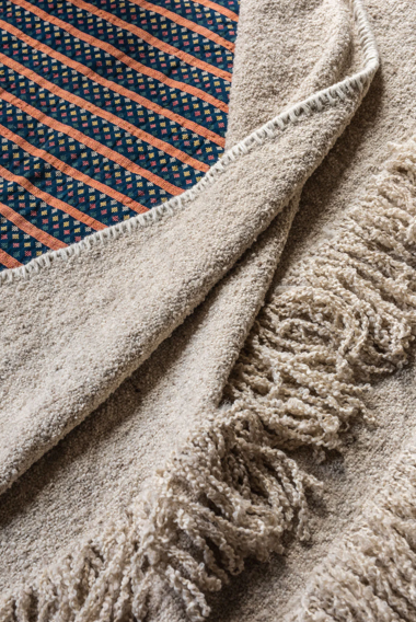 Coverlet no.02 is designed to embrace opulence and luxury. It’s rich fringes and hand-sewn decorative edge stitchmake a bold statement, while the layered flat weaving adds an eye-catching dimension.