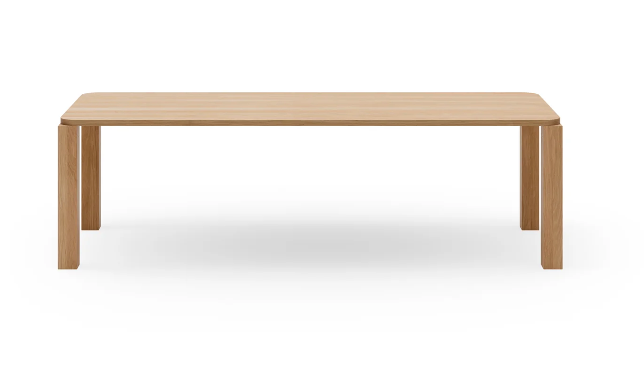Named after the mythical Titan condemned to hold up the heavens on his shoulders, the solid legs of the Atlas table stand strongly as support for the spacious tabletop. The meeting and contrast between the legs and the tabletop is central to the design, where each element exaggerates the other giving the table its distinct presence and brutalist feel. For Atlas, John Astbury has taken inspiration from several influences in architectural history. There are references to porticoes and colonnades, but Atlas builds mainly on the archetypal post-and-lintel construction. Combined with simple geometry, the circle and the square, it is the primary archetypes that together create the table’s character and composition.