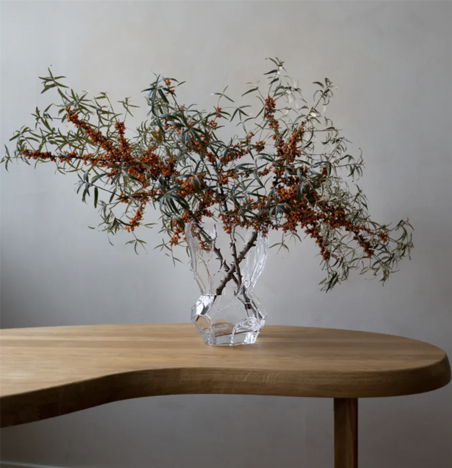 With a shape inspired by antique French florist vases and a structure inspired by a grand mountain reflection, it combines two unique forces. A mix of florist functionality and natures calmness creates this unique center piece.