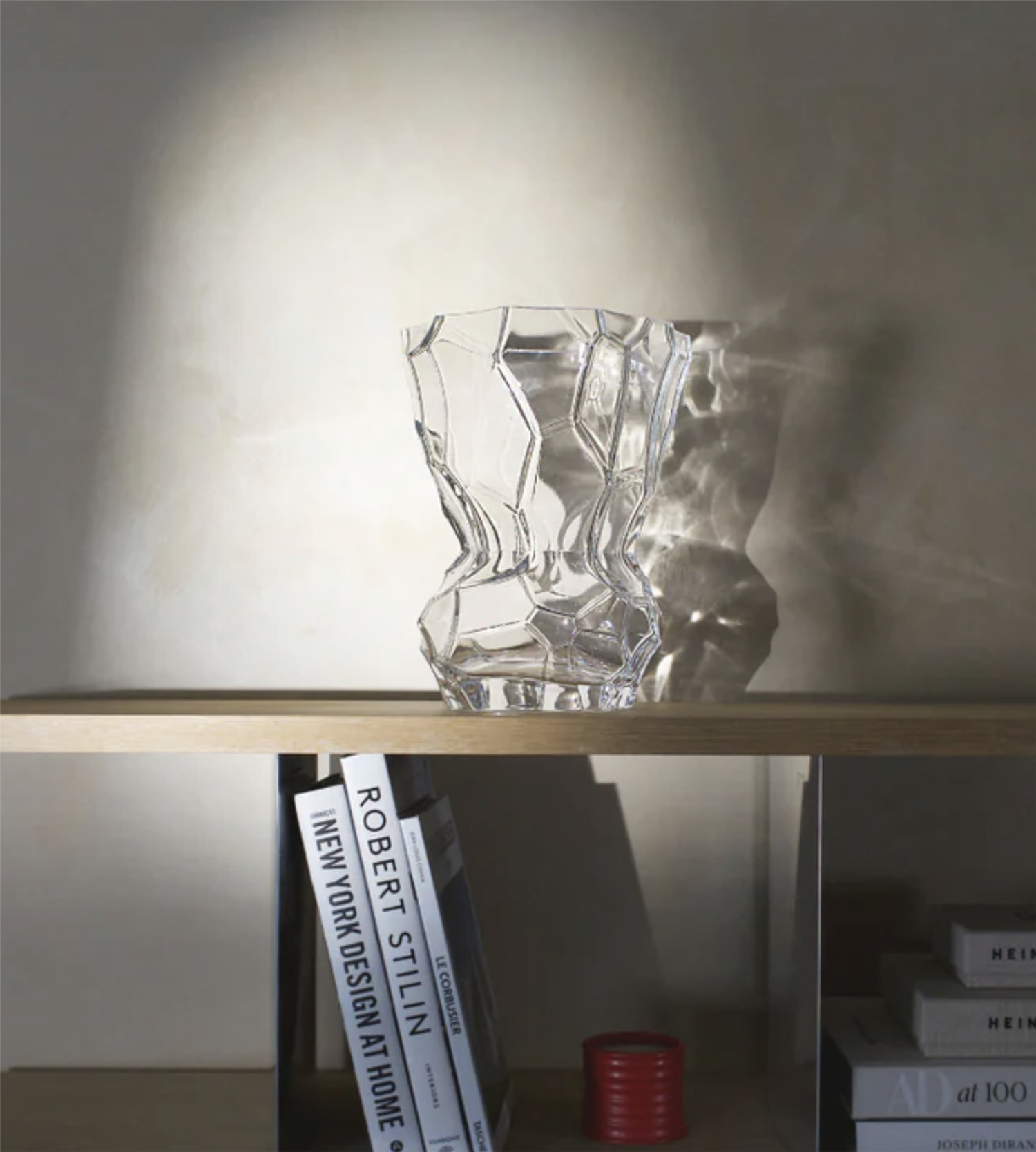 Reflection vase is inspired by the cold mountain’s lakes of Switzerland. The Reflection of the mountain in the water evokes a calmness and freshness. Every glass piece is handmade in one grand piece.