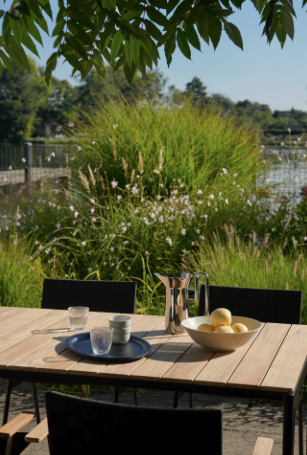 A celebration of nature and materiality, Anderssen & Voll’s outdoor collection Ville embraces alfresco living with a combination of solidity and softness. The smaller of two table sizes, the AV25 is well suited to both smaller hospitality locations and residential settings. Incorporating the use of wood, the tabletop is crafted from teak to provide a warm and inviting surface which can be oiled or left untreated to suit individual preferences.