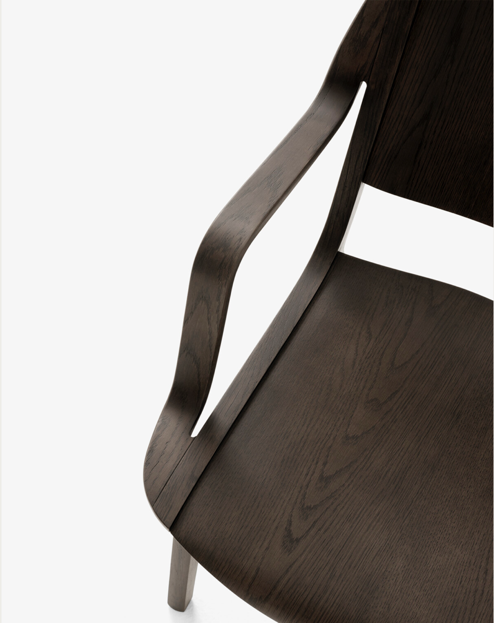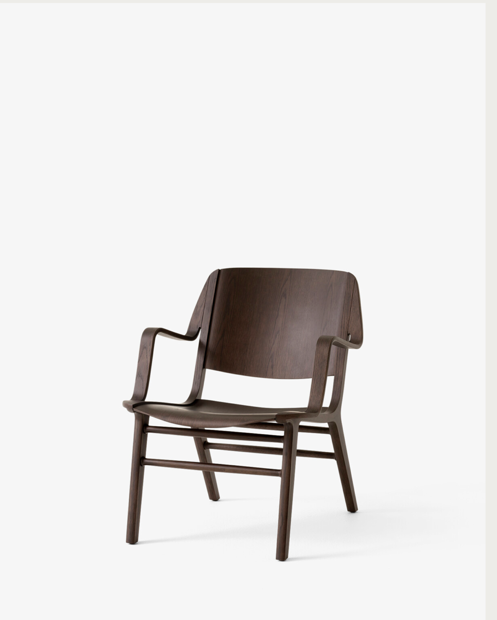 AX represents one of the first times that plywood was shaped in 3D. The continuous curve of the armrests is mirrored in the frame, indicative of Hvidt & Mølgaard’s training in Danish cabinetry. Their expert engineering of the construction ensures unsurpassed ergonomics, resulting in the design’s reputation as the most comfortable wooden chair of its kind. Available in Lacquered Oak and Walnut or Dark Stained Oak and Walnut.