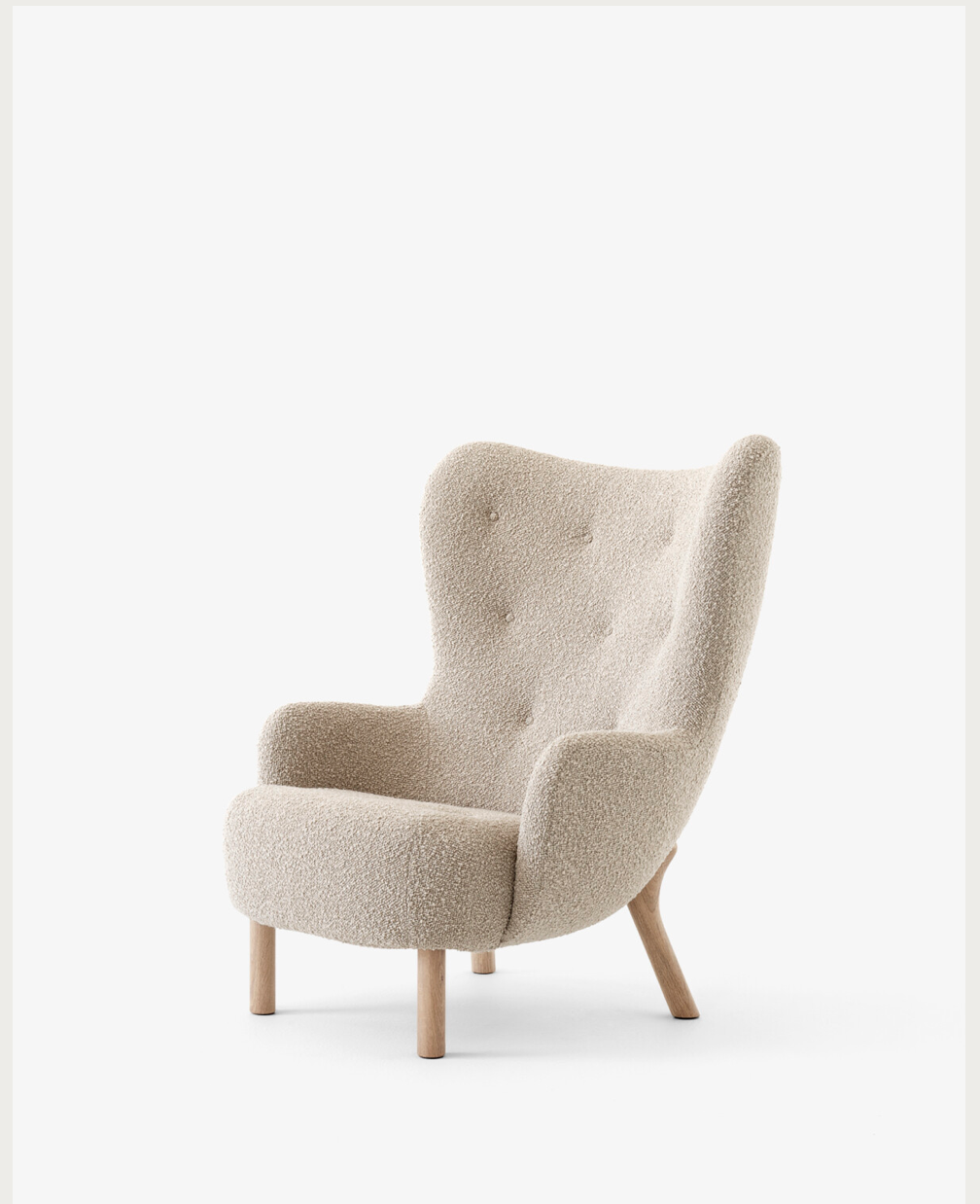 Based on an original design by Danish designer Viggo Boesen in 1938, Petra is a lounge chair with a high-set, winged-backrest and unparalleled comfort. The Petra lounge chair follows the great success of Little Petra, named after Boesen’s mother-in-law, Petra – said to be a small woman with a big personality, her presence is felt in the embracing body of the armchair’s design. Petra now carries the same bold character and aesthetic but in a larger form.