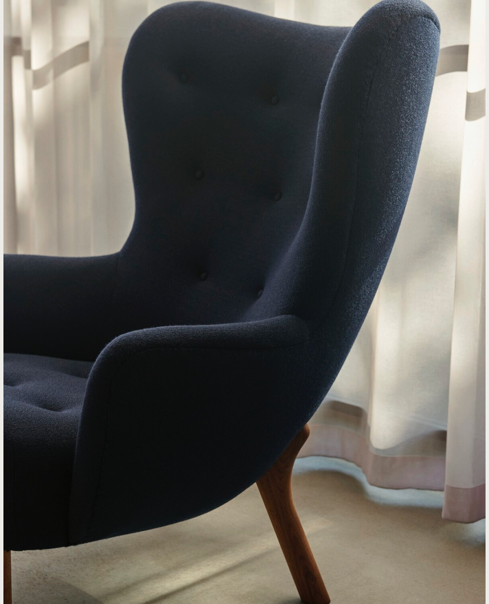 Based on an original design by Danish designer Viggo Boesen in 1938, Petra is a lounge chair with a high-set, winged-backrest and unparalleled comfort. The Petra lounge chair follows the great success of Little Petra, named after Boesen’s mother-in-law, Petra – said to be a small woman with a big personality, her presence is felt in the embracing body of the armchair’s design. Petra now carries the same bold character and aesthetic but in a larger form.