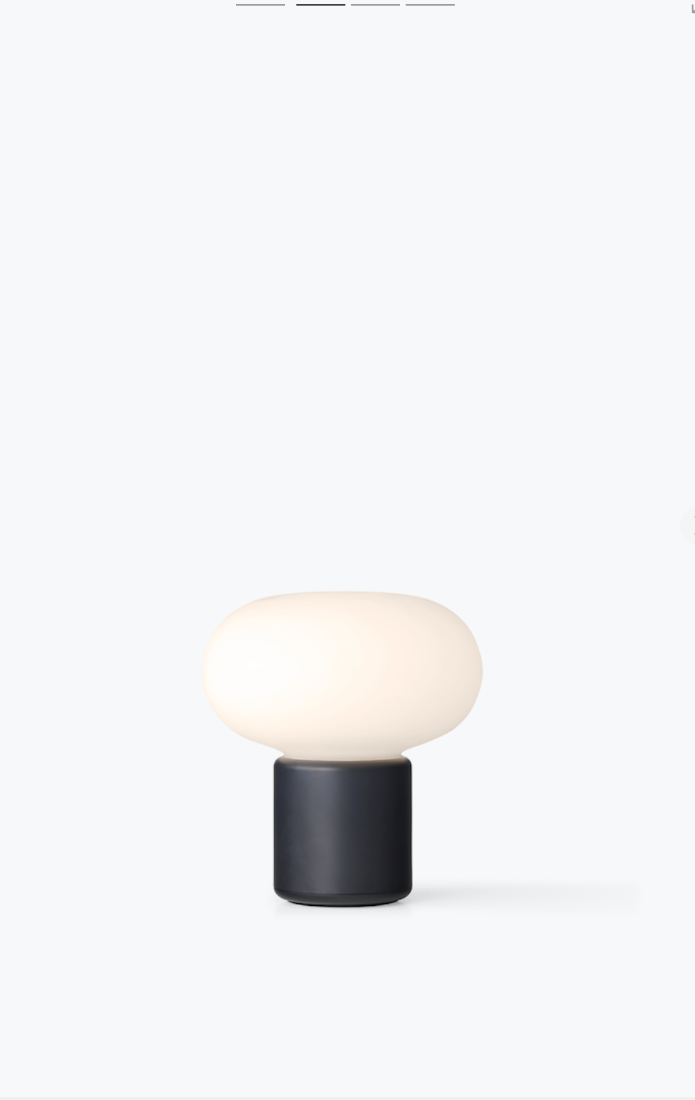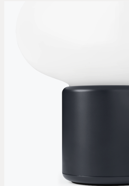Som en poetisk fortælling finder Karl-Johan lampen nu tilbage til sin inspirationskilde: naturen. Karl-Johan Portable er en lille og let transportabel version af det originale design, hvor det bløde formsprog, der kendetegner lampen, er gjort ekstra robust. Det gør det muligt at tage lampen med ud i naturens elementer. Med på terrassen fra de første spæde forårsaftener og til aftenbadning på stranden en varm sommerdag. Materialet er særligt modstandsdygtigt mod slag og afviser regn, dug, sand og jord, så lampen kan følge dig både inde og ude – uanset hvor og hvornår.