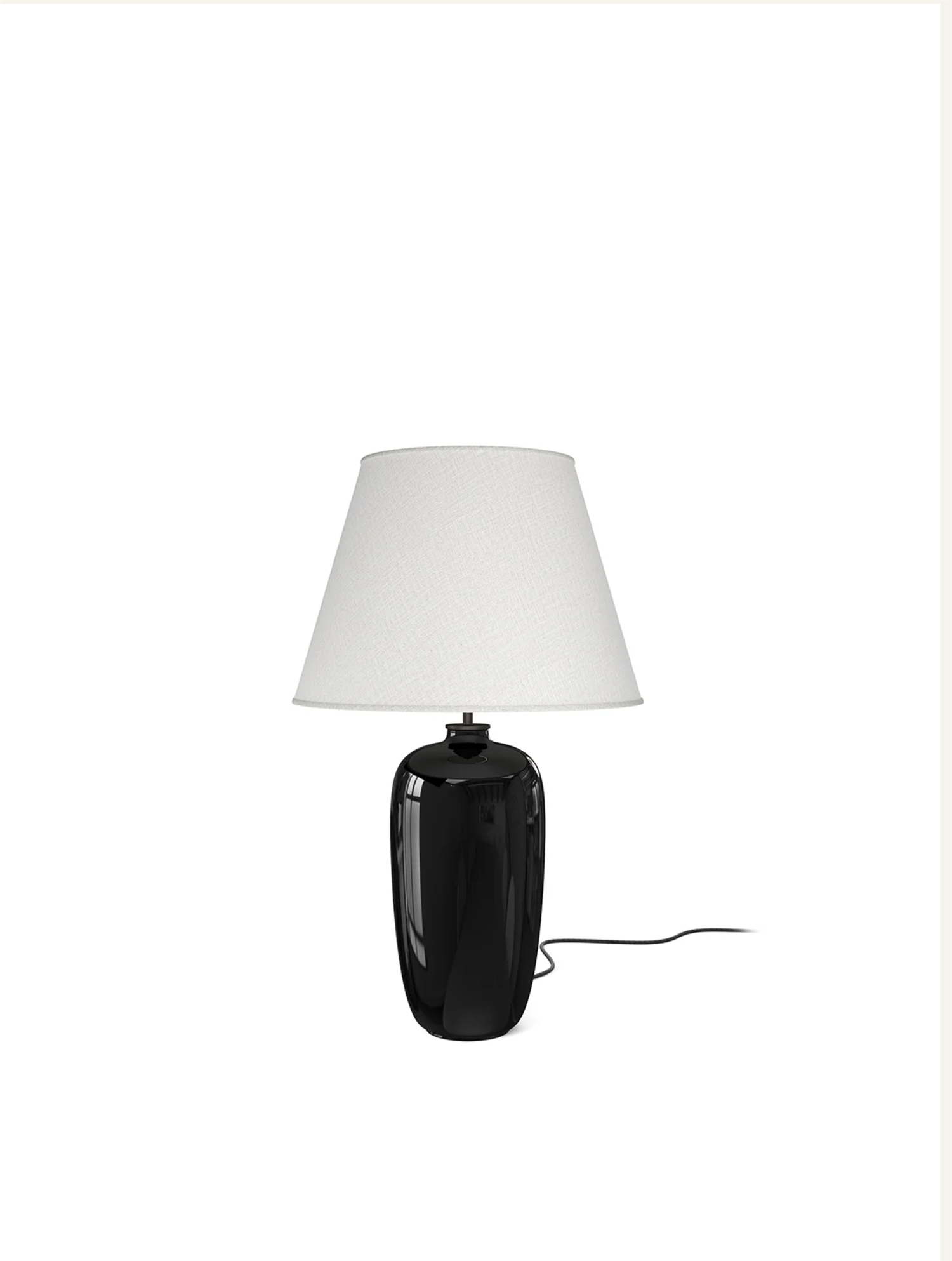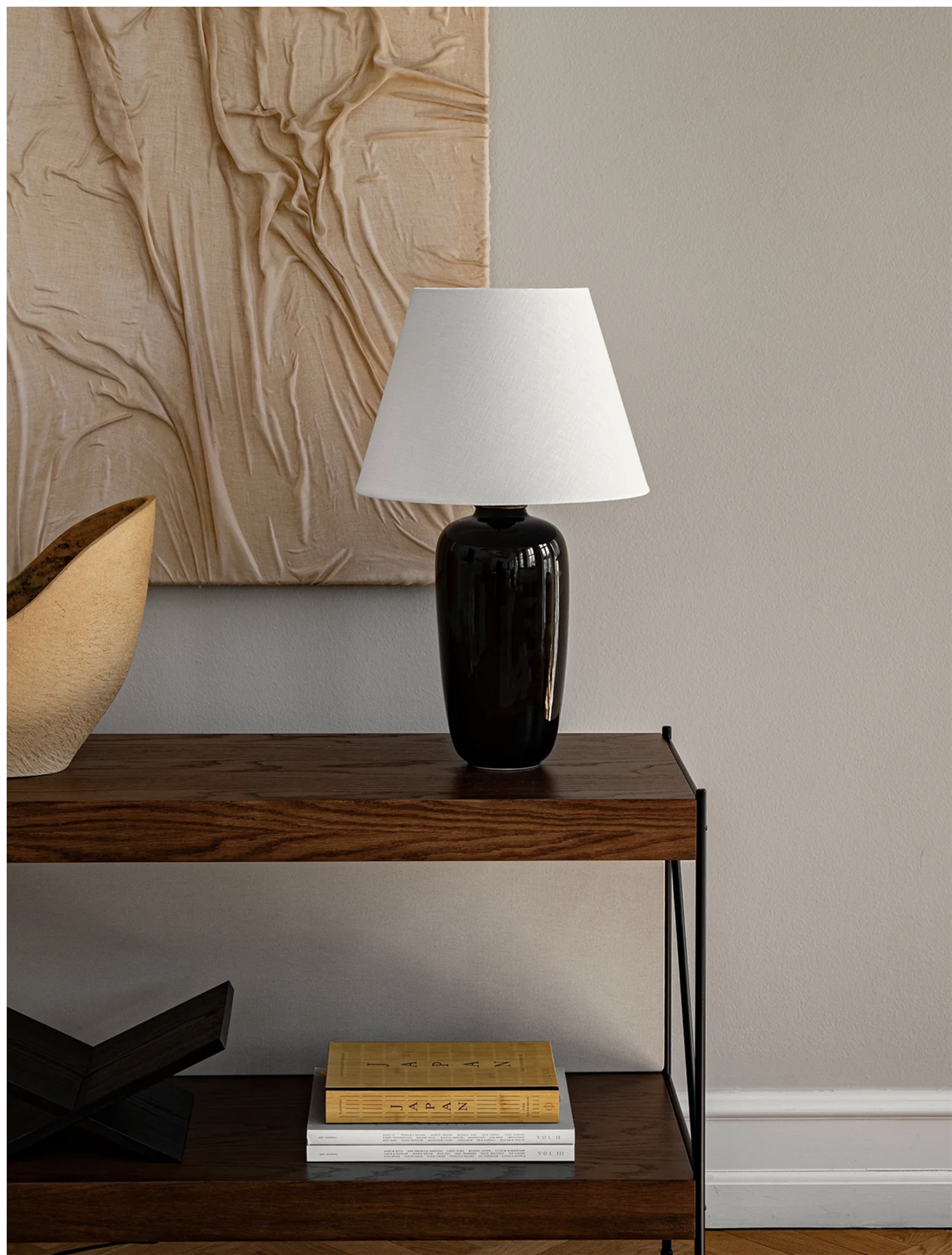 The transformative powers of light come into play on the Torso Table Lamp by Krøyer-Sætter-Lassen, designed with a timeless look that lends itself to any setting. The elongated base — cast from black-glazed stoneware and elongated for an understated yet sculptural expression — holds a tactile linen shade that diffuses the light to create instant ambience. A brass touch dimmer allows for a personal setting.