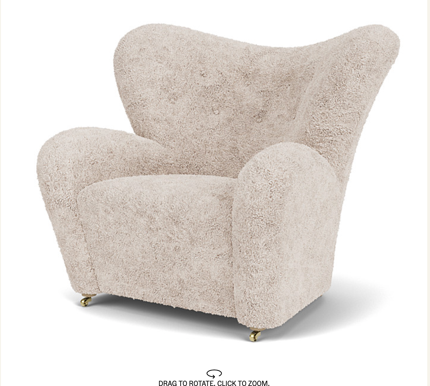 The Tired Man was launched at the Copenhagen Cabinetmakers’ Guild Exhibition in 1935 and has since become an icon of Danish design. The epitome of craftsmanship and comfort, the characteristically curved armchair was designed by Flemming Lassen to feel “as warm and snug as a polar bear cub in the arms of its mother.” Relaunched in 2015, the award-winning design is offered in plush upholstery, including sheepskin in a nod to the original, and with natural or dark-oiled oak heartwood legs and front brass casters for easy movement. A corresponding footstool ensures further comfort.