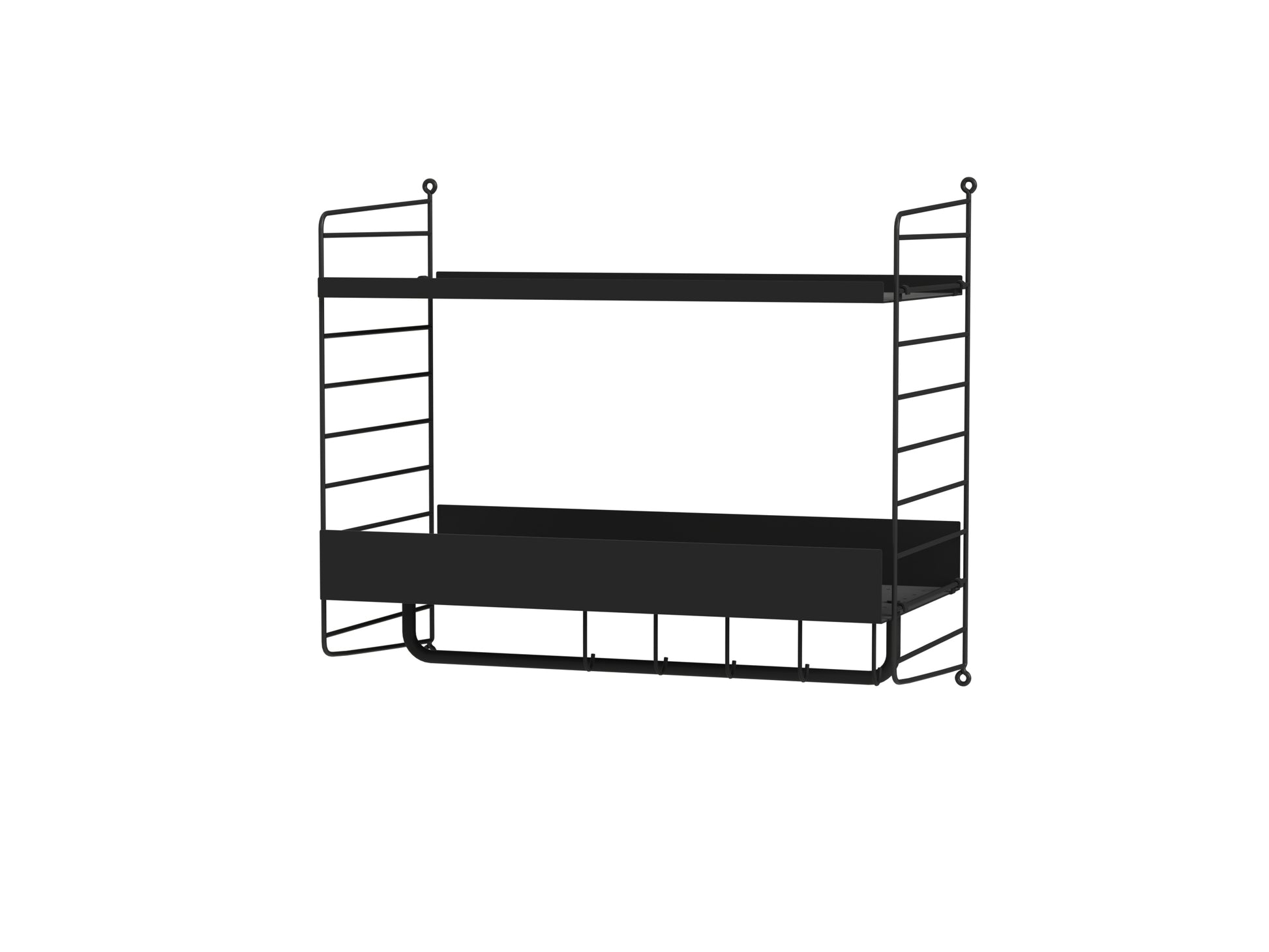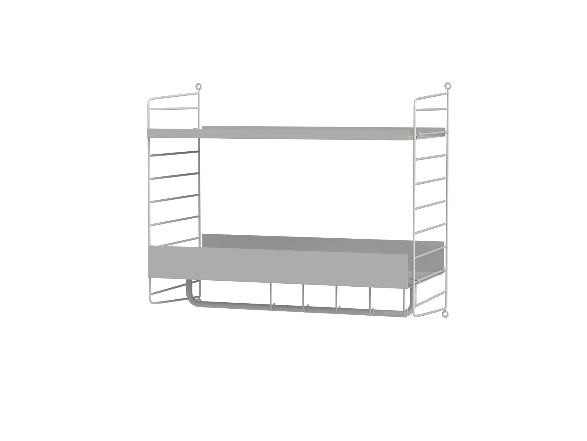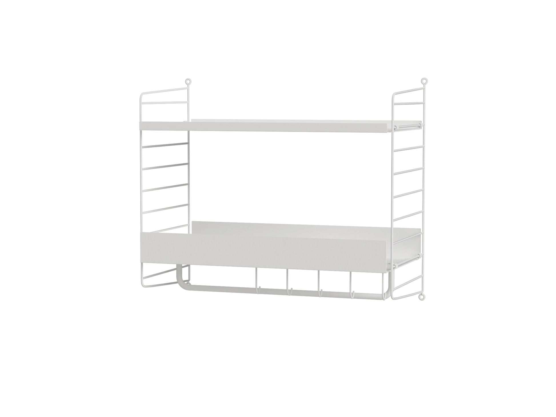 Even the smallest of hallways deserves a smart solution. This wall hung combination with added hooks and rod gives you more storage possibilities than you could dream of in a narrow hallway.